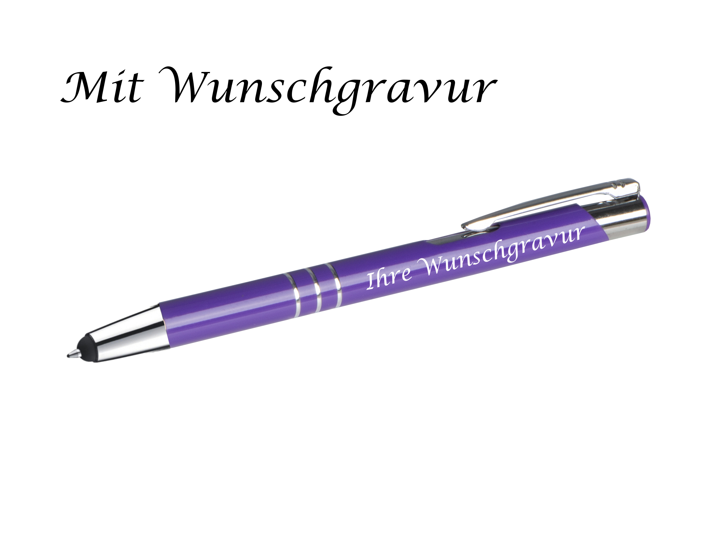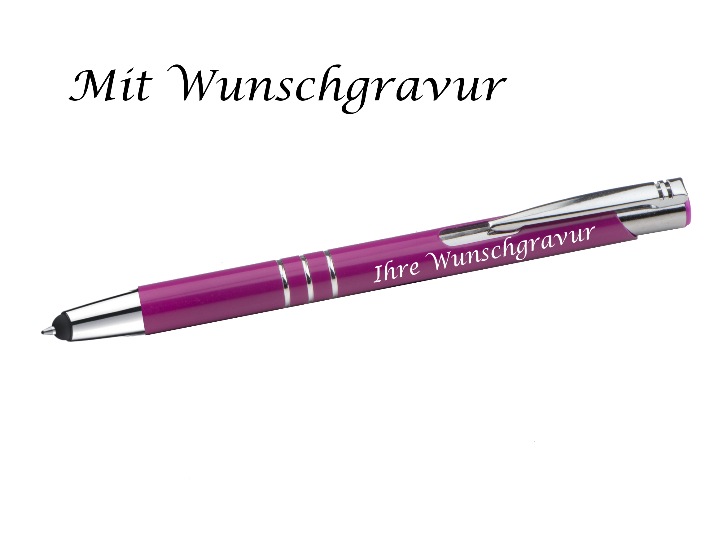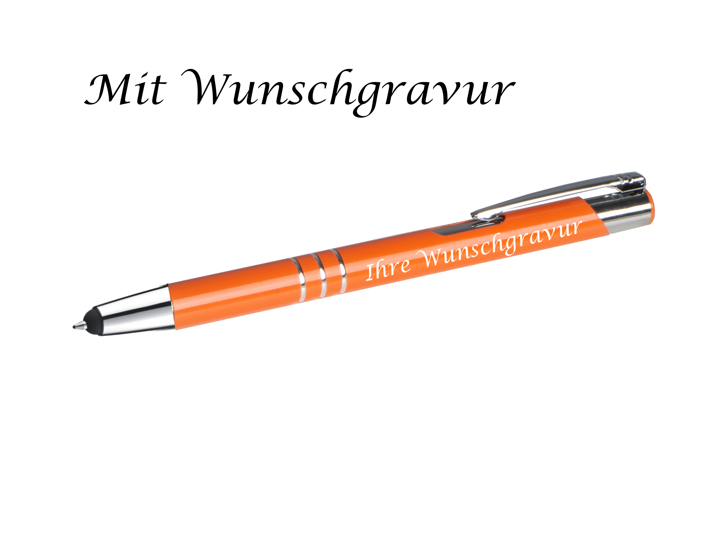 10 Touchpen Kugelschreiber aus Metall mit Gravur / 10 verschiedene Farben