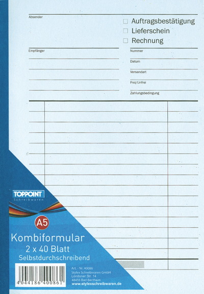 - Auftragsbestätigung, Lieferschein, Rechnung