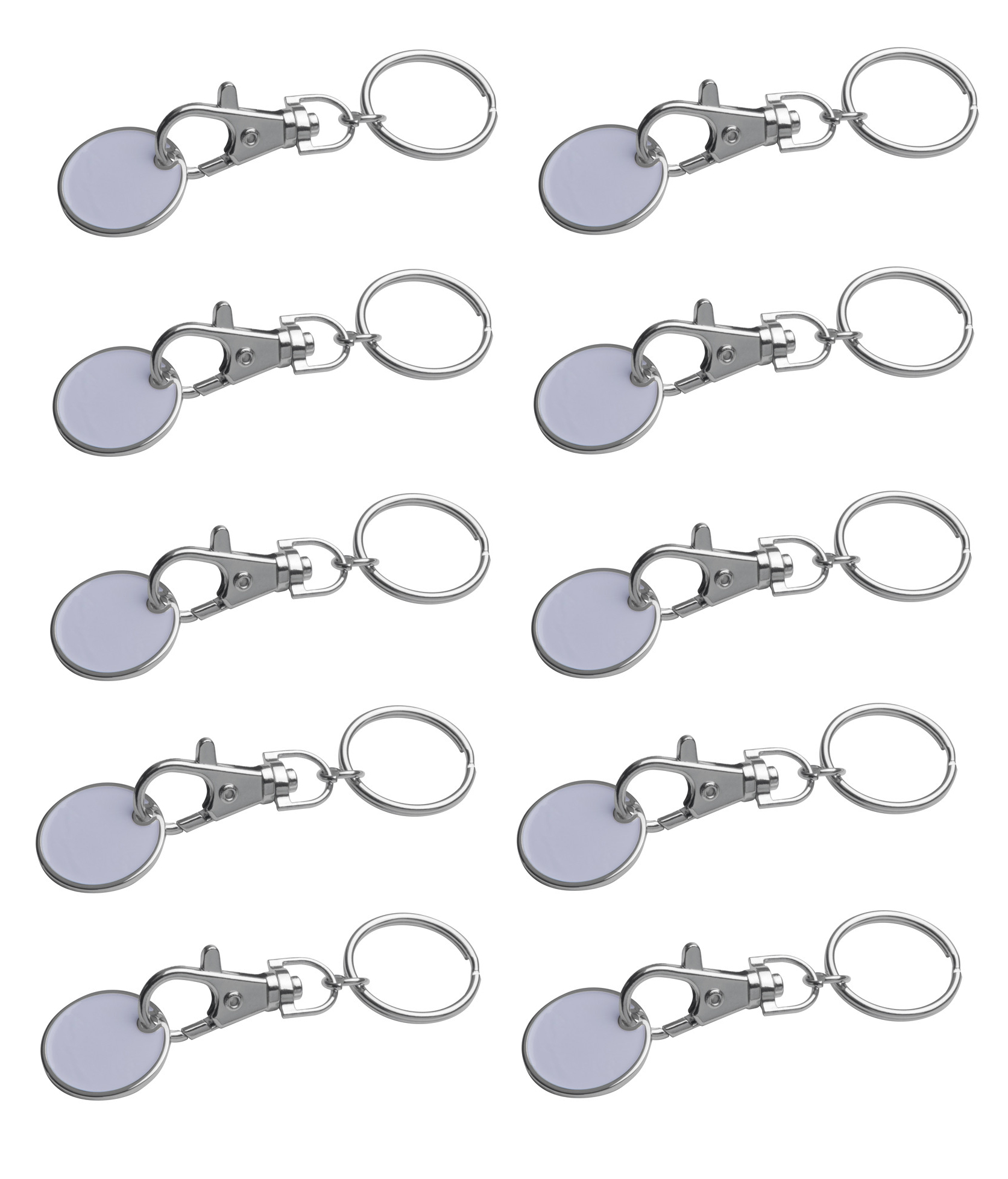 10x Metall Schlüsselanhänger mit Gravur / mit Einkaufschip