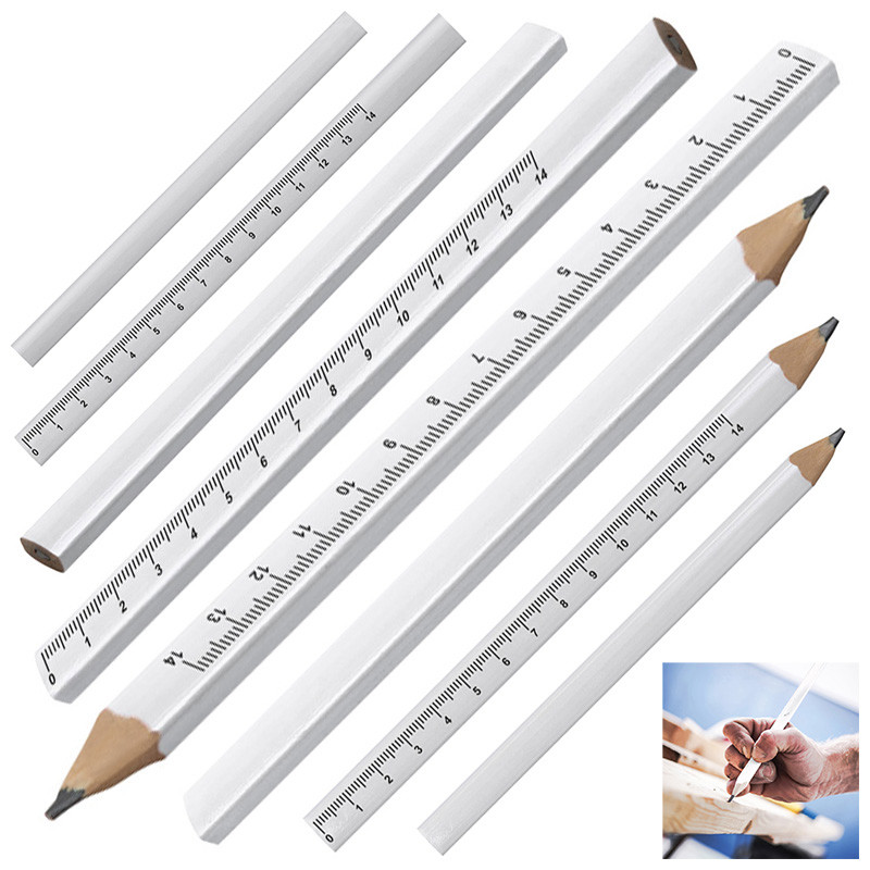 Produktinformationen "15 Zimmermannsbleistifte / mit aufgedrucktem Lineal / je 5x weiß, rot und blau"