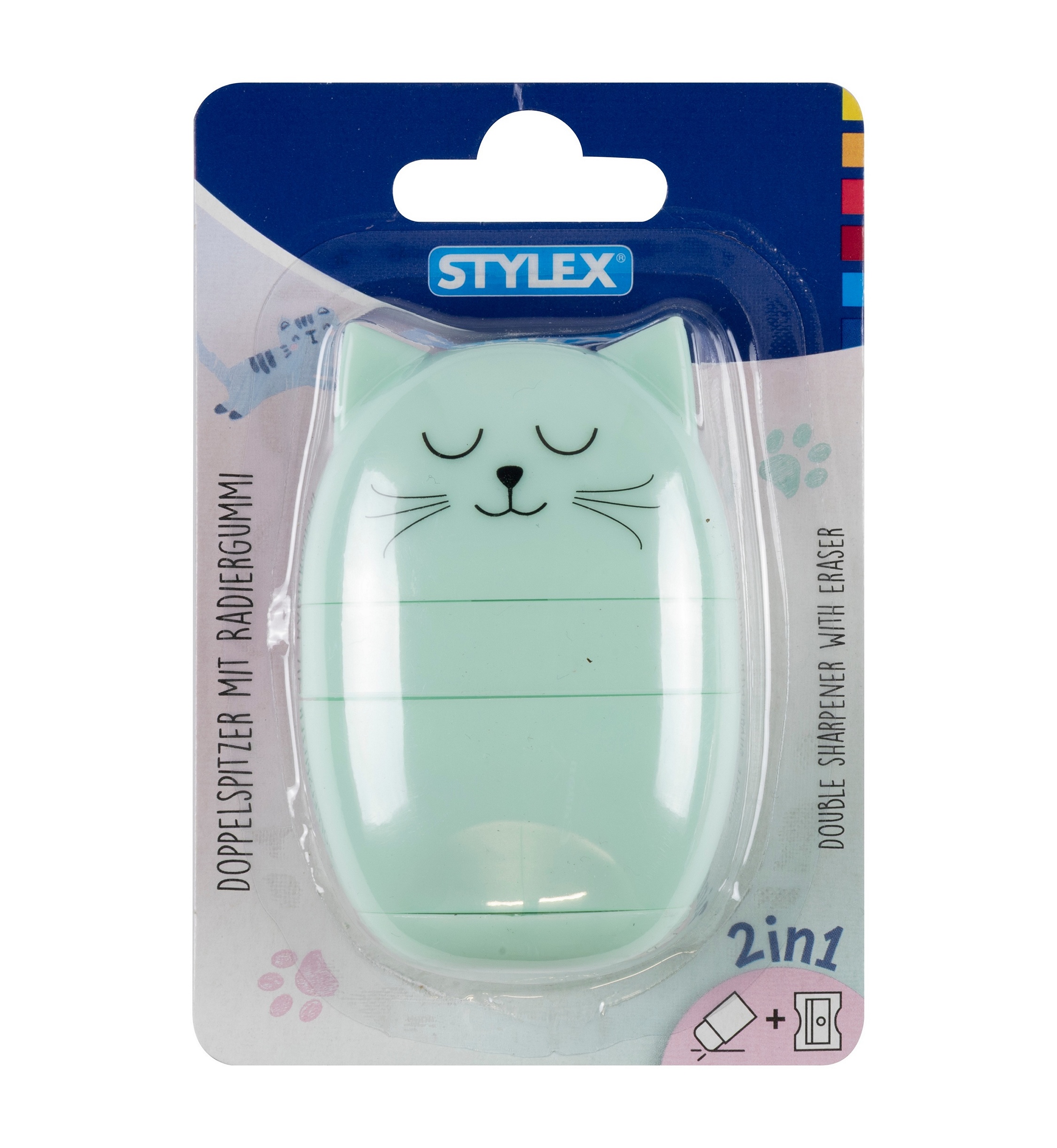 - 3x Doppelspitzer mit Radiergummi "Katze"