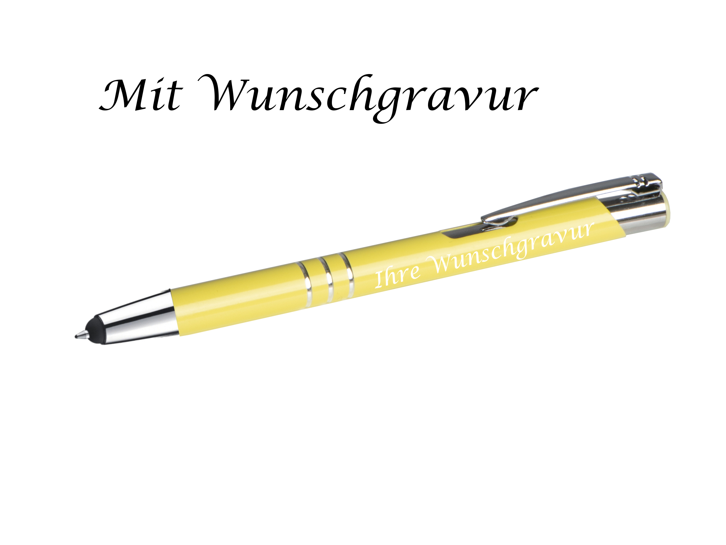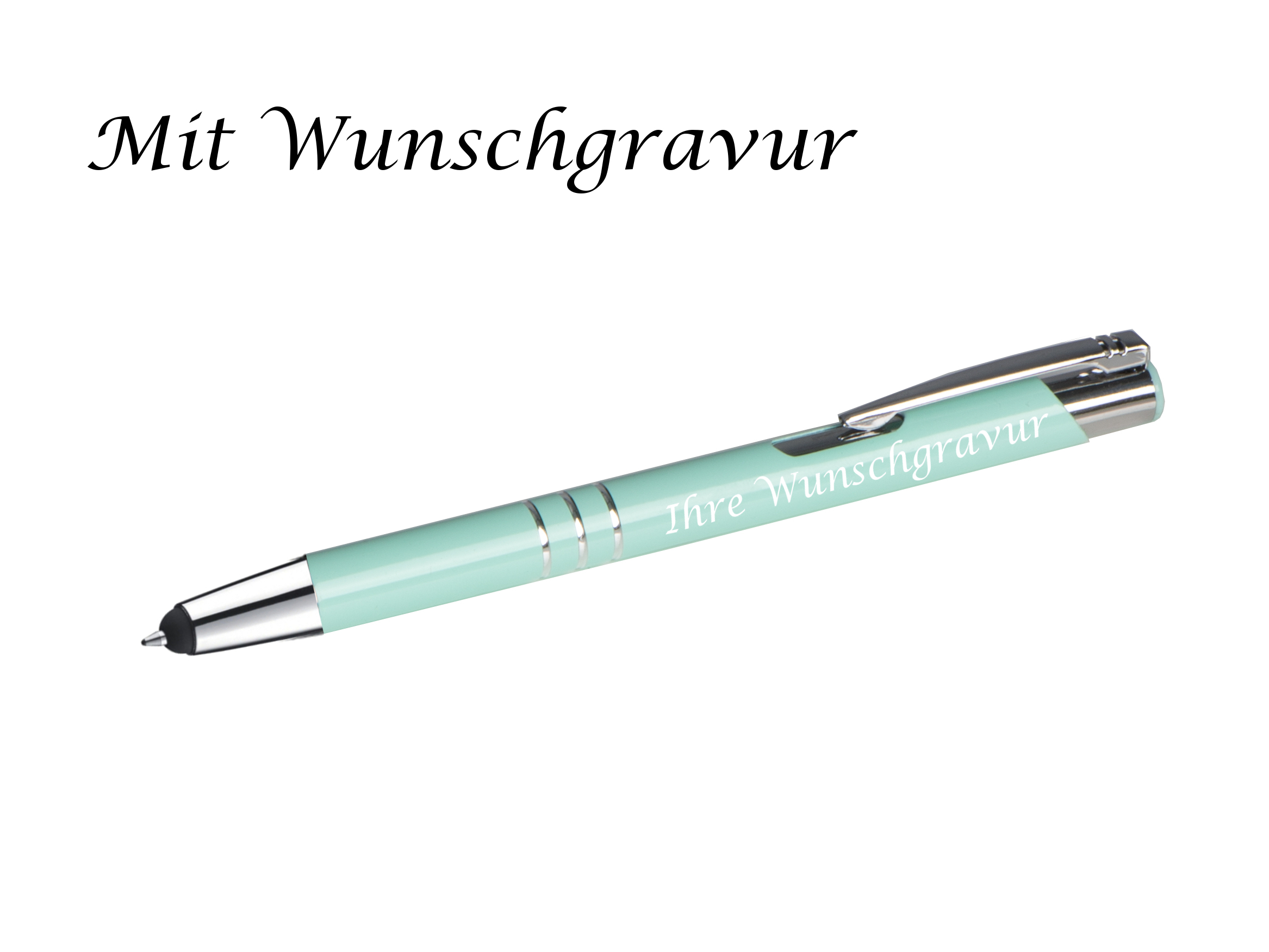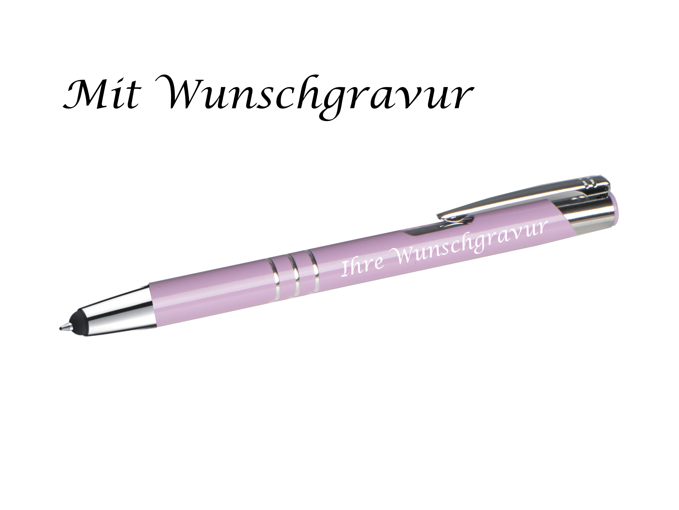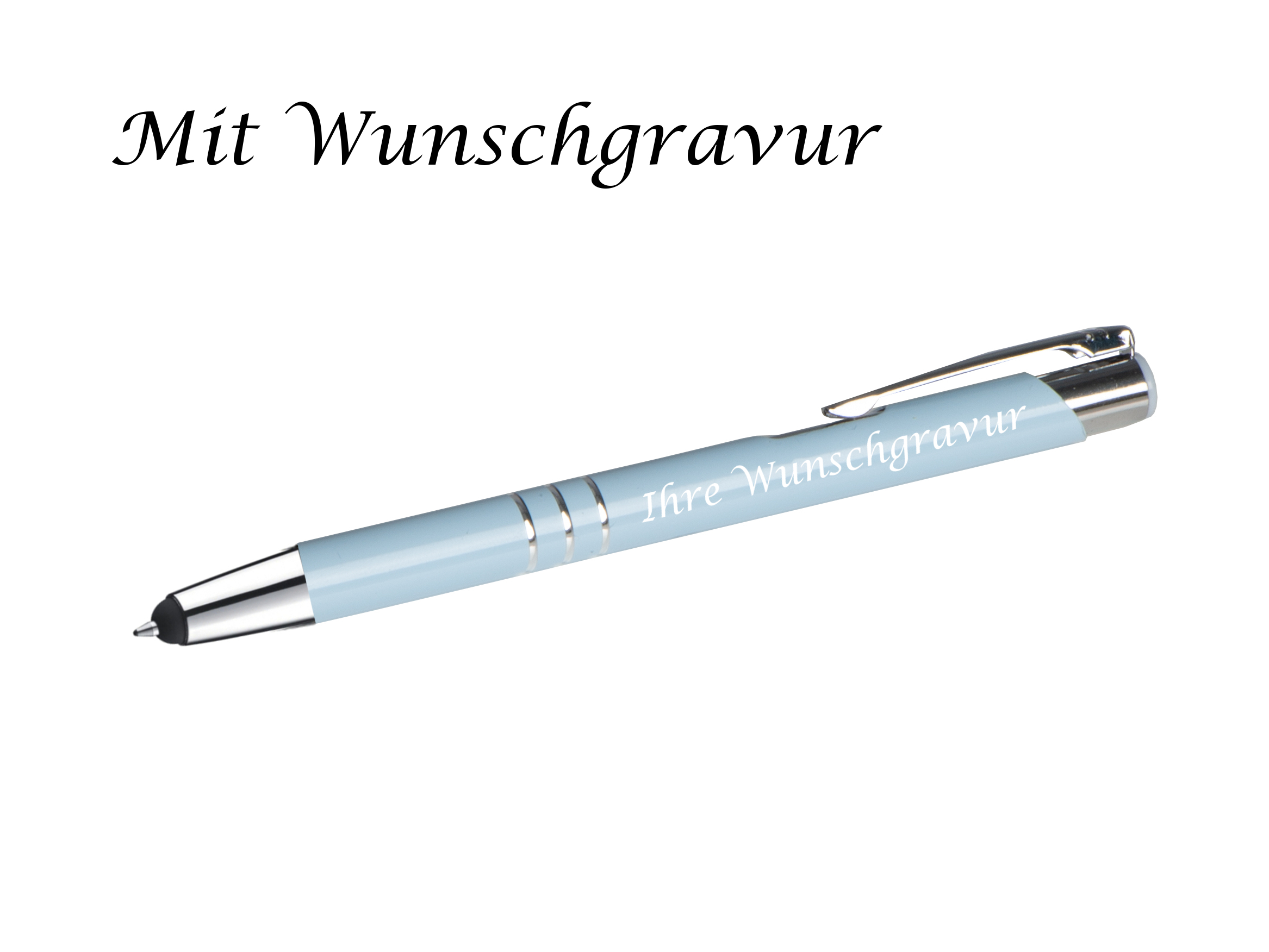 5 Touchpen Kugelschreiber "Pastell" aus Metall mit Gravur / 5 Pastell-Farben