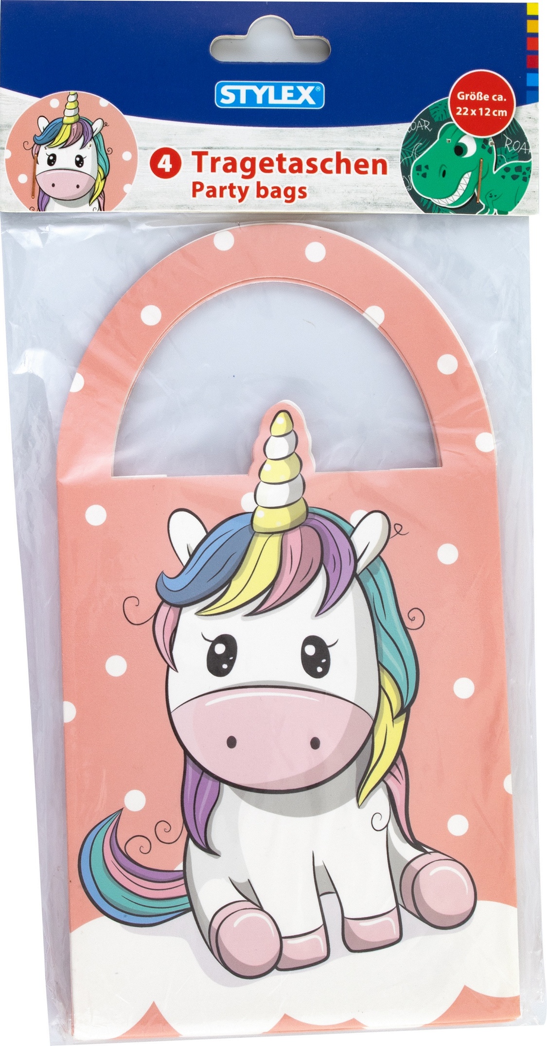 Produktinformationen "8 Tragetaschen aus Papier / 22 x 12 cm / Geschenkbeutel / je 4x Dino und Einhorn"