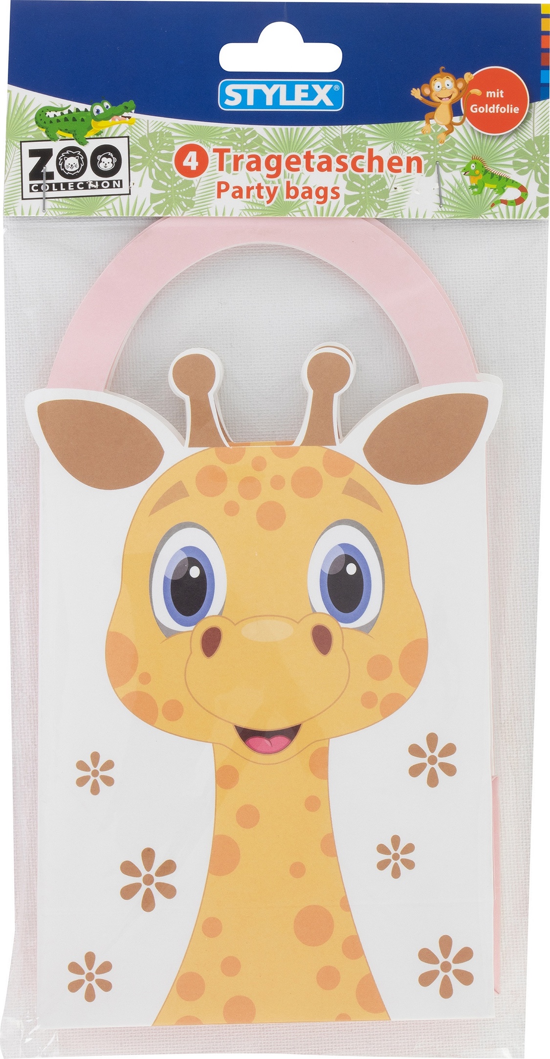 Produktinformationen "8 Tragetaschen aus Papier / 22 x 12 cm / Geschenkbeutel / je 4x Löwe und Giraffe"