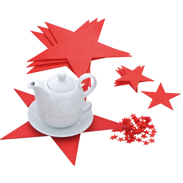 - bestehend aus 4 großen, 4 mittleren und 74 kleinen dekorativen Filzsternen