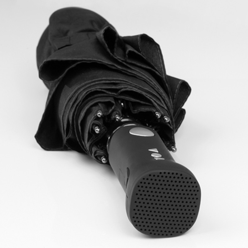 Automatik Taschenschirm aus Pongee mit Bluetooth Lautsprecher im Griff
