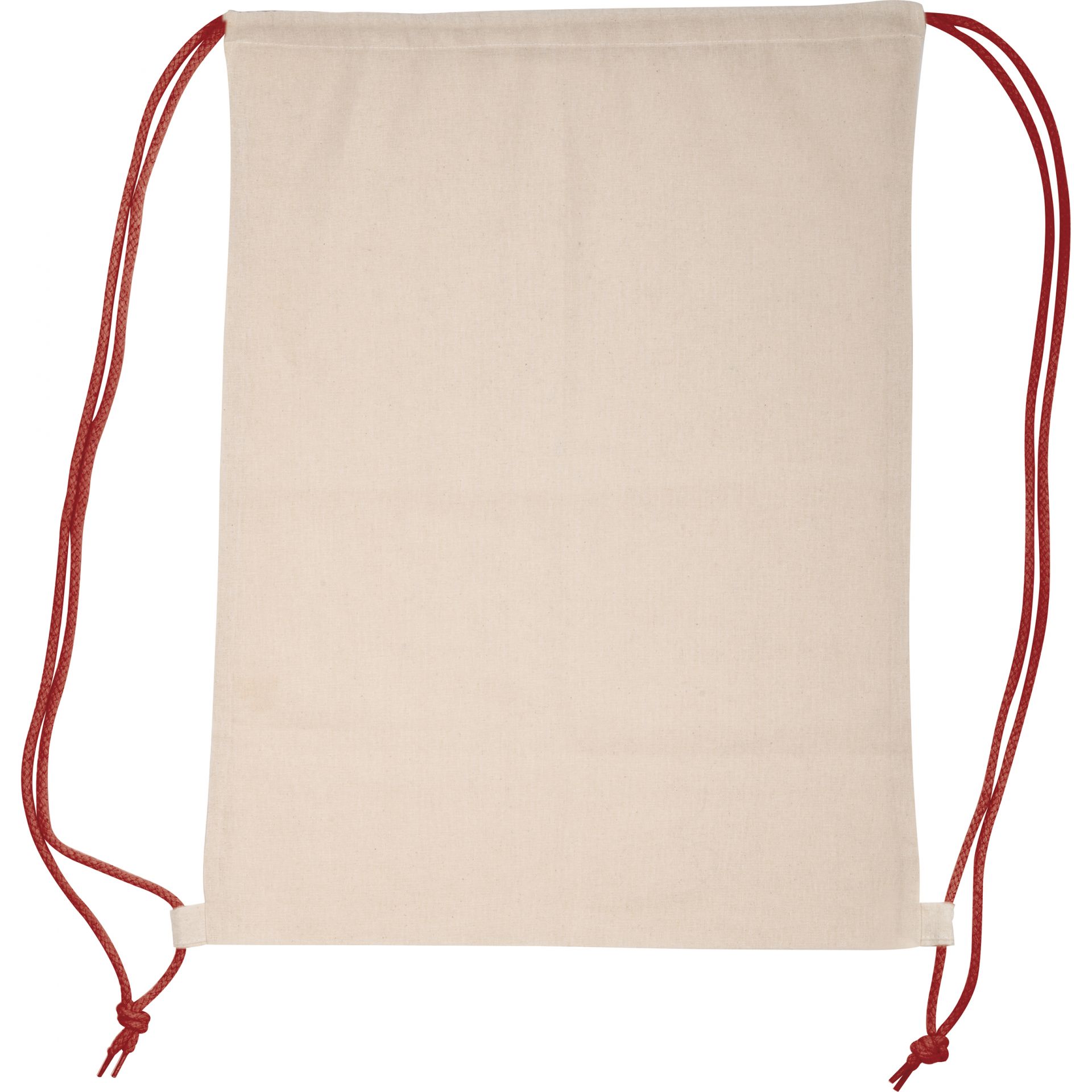 Baumwolle Gymbag / Sportbeutel / Turnbeutel / weiß mit roten Kordelzügen