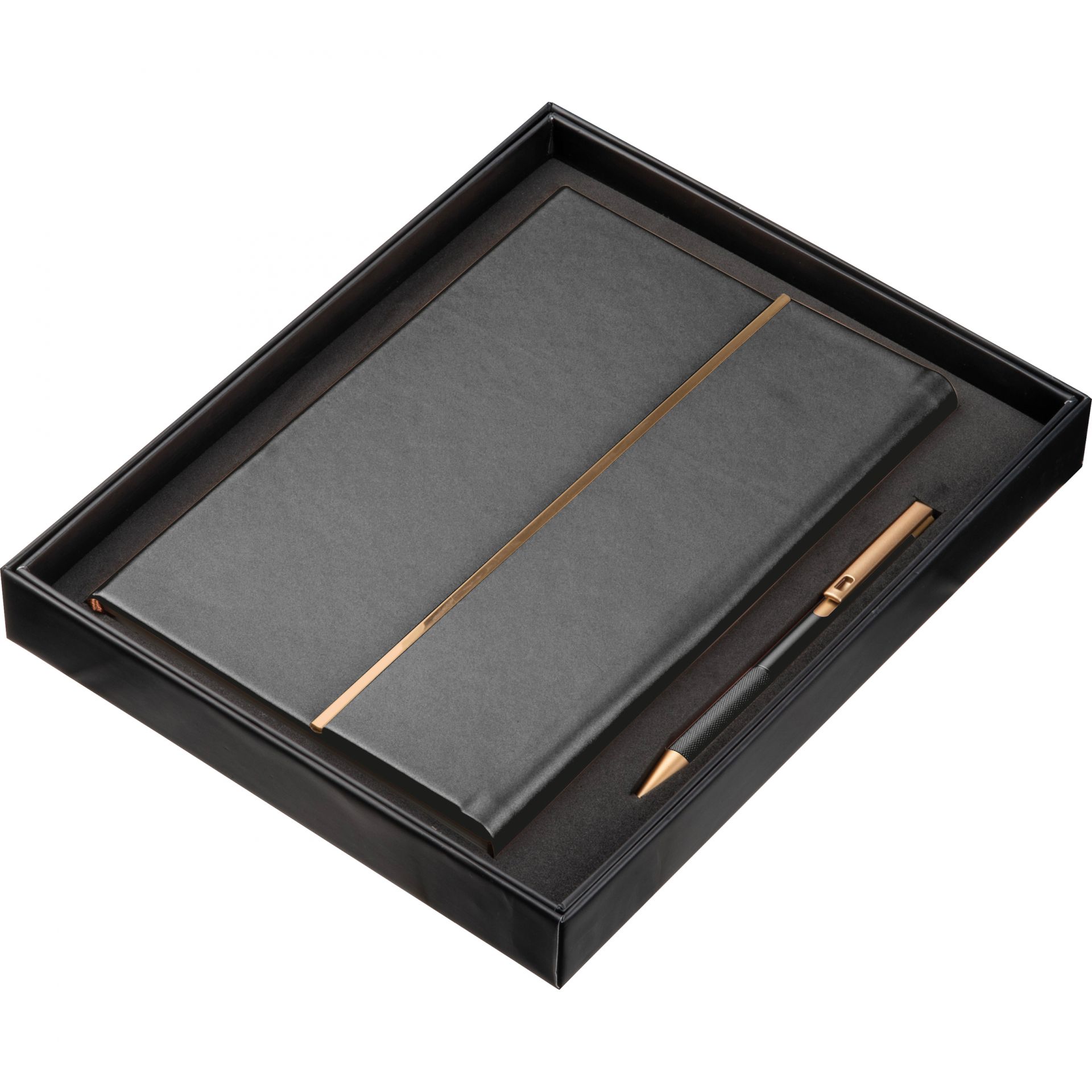 Edles Set mit Notizbuch und Kugelschreiber mit Gravur / Geschenkkarton / schwarz