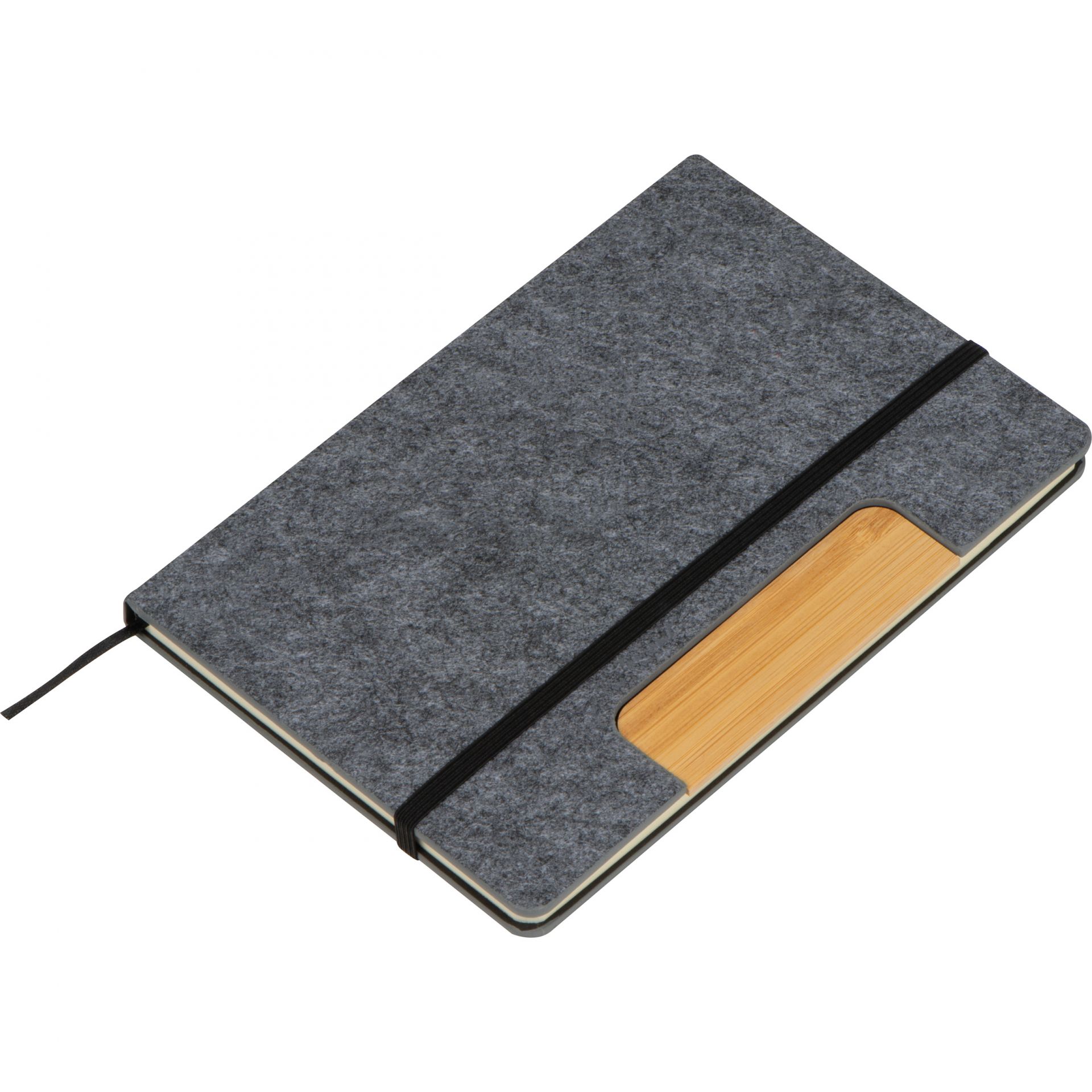 - das Notizbuch hat einen Filzeinband mit Bambus-Einleger, 160 Seiten recyceltes liniertes Papier, ein Lesezeichen sowie ein Gummiverschlussband