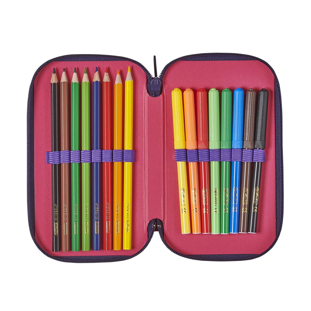 - Inhalt: 8 Buntstifte, 8 Fasermaler, 1 Kugelschreiber, 1 Radierer, 1 Spitzer, 2 Bleistifte, 1 Lineal, 1 Dreieck