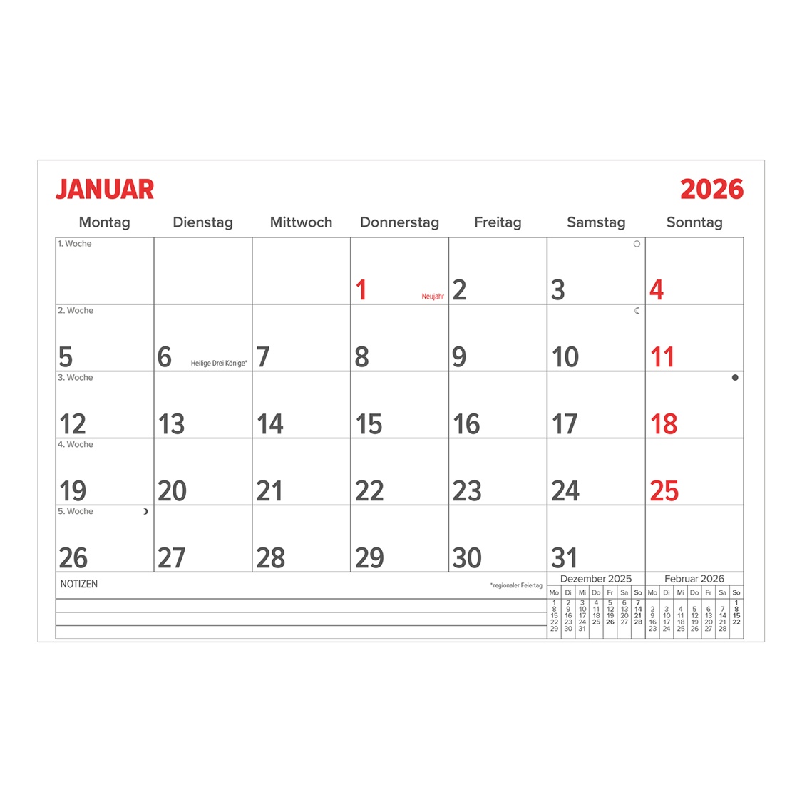 Produktinformationen "Monatskalender 2026 / DIN A4 / Monatsterminplaner / Wandkalender + Kgelschreiber"