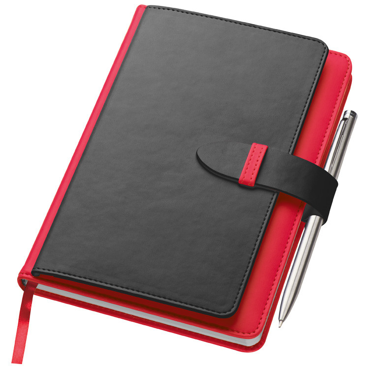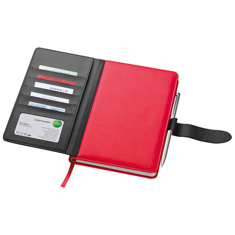 Notizbuch mit Visitenkartenmappe mit Gravur / DIN A5 / aus PU / Farbe: rot
