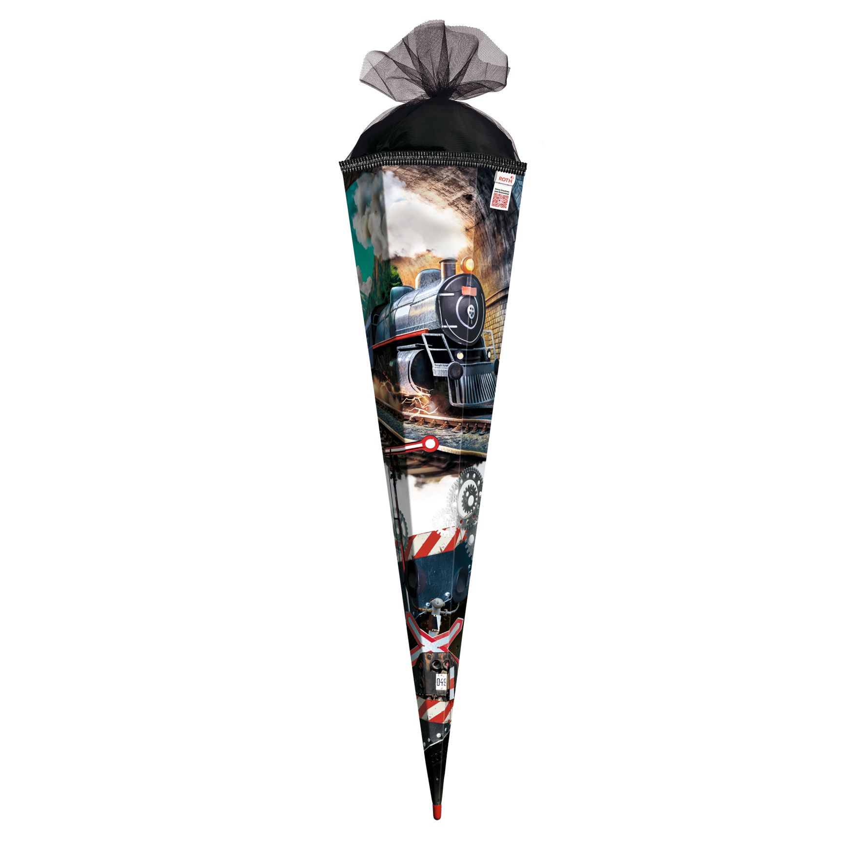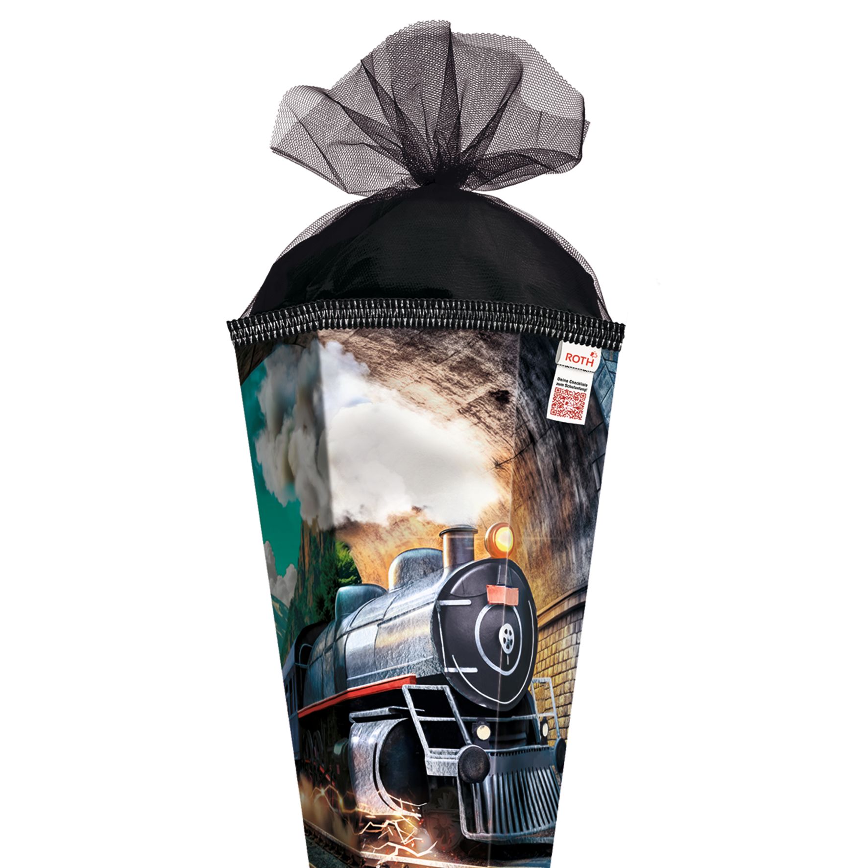 Produktinformationen "Schultüte mit Gravur / Zuckertüte / 85cm / eckig / mit Glitzerborte / "Dampflok""