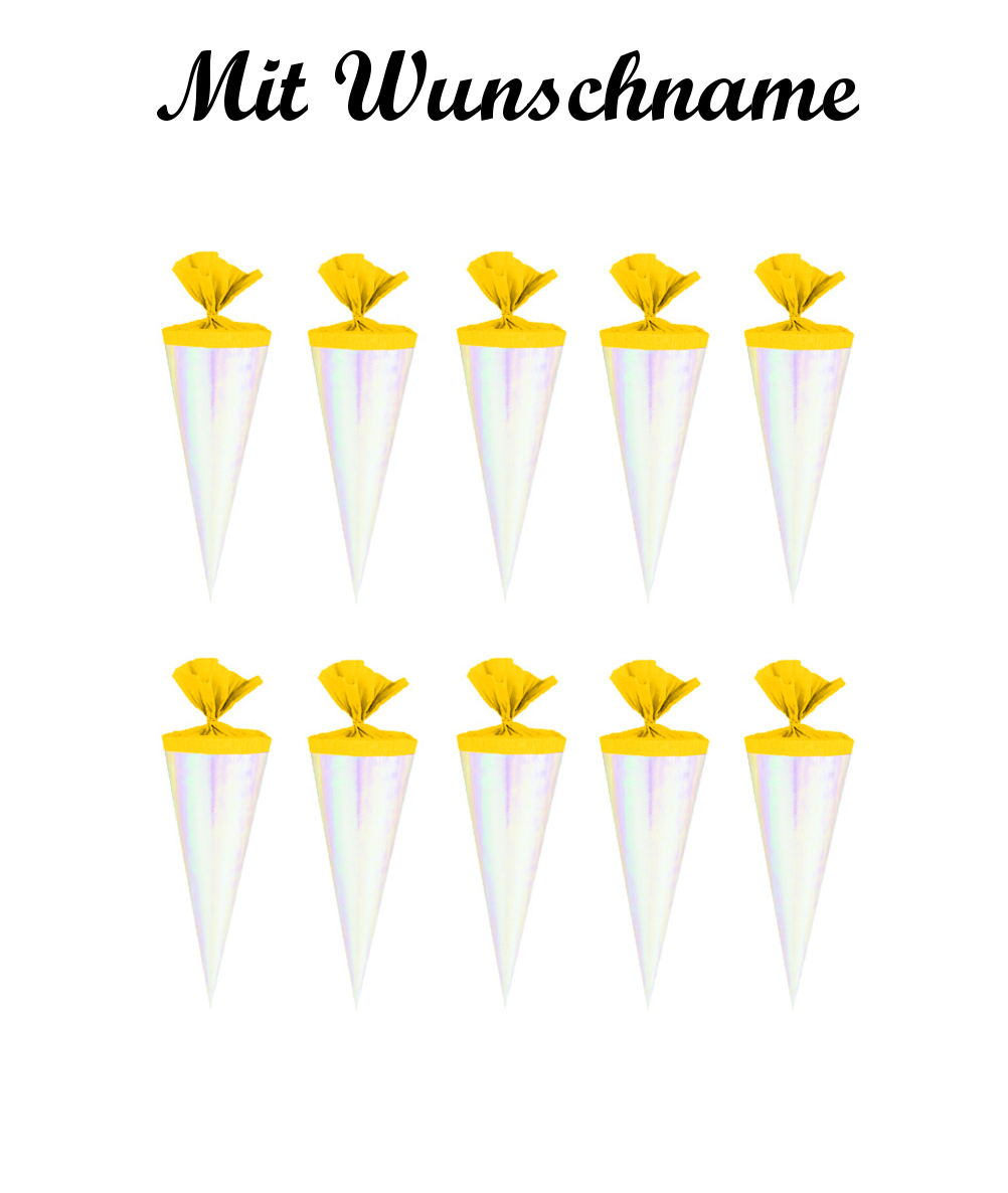 10 Deko Schultüten mit Namensgravur - 15cm - rose' mit gelben Krepp
