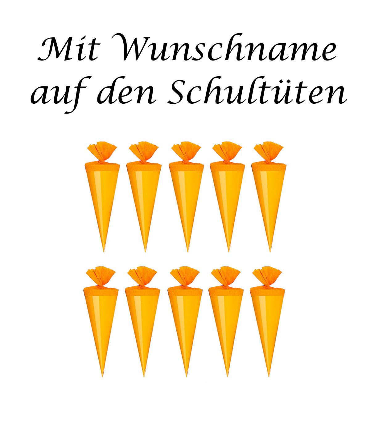 10 Deko Schultüten mit silber gefärbter Gravur / Länge: 12cm / Farbe: sunshine