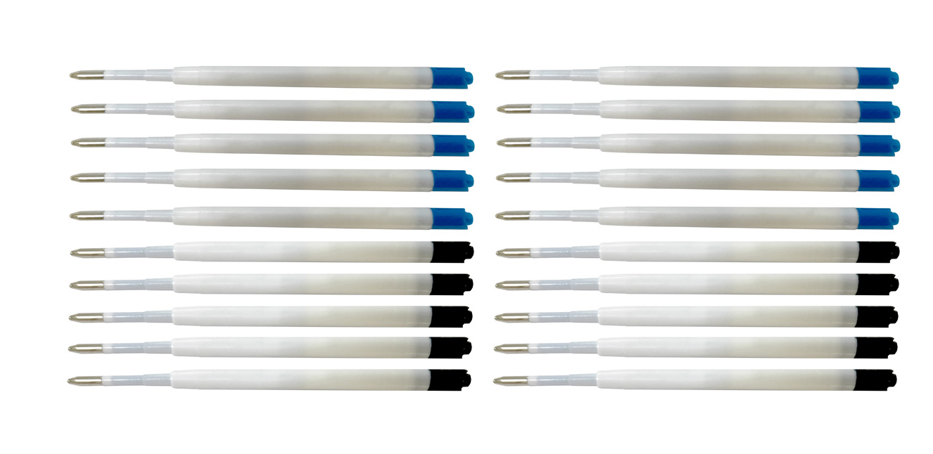 - incl. 20 Großraumkugelschreiberminen (je 10 blauschreibend im Kugelschreiber und 10 schwarzschreibend zusätzlich)