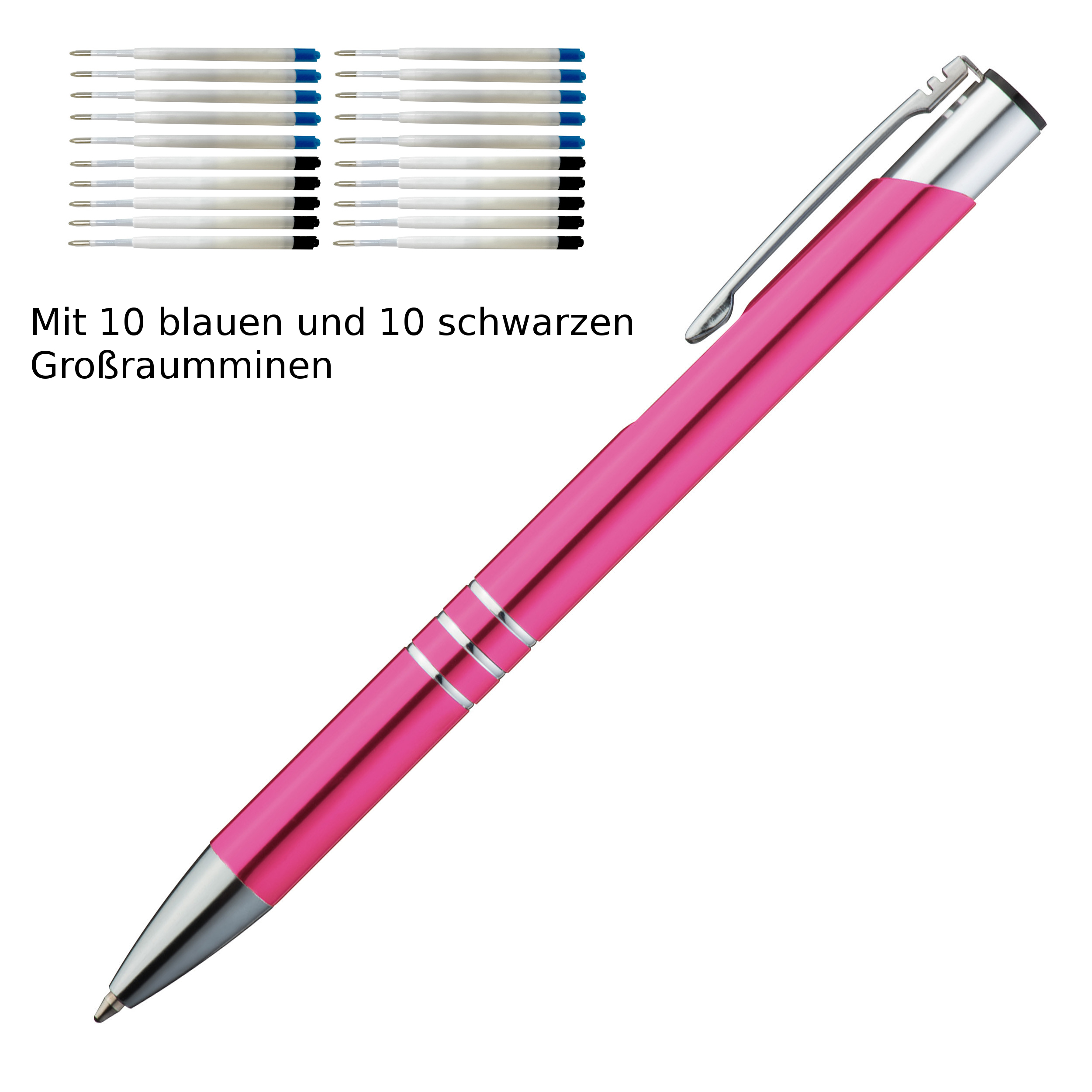 10 Kugelschreiber aus Metall / je 10 schwarze + blaue Minen / Farbe: pink