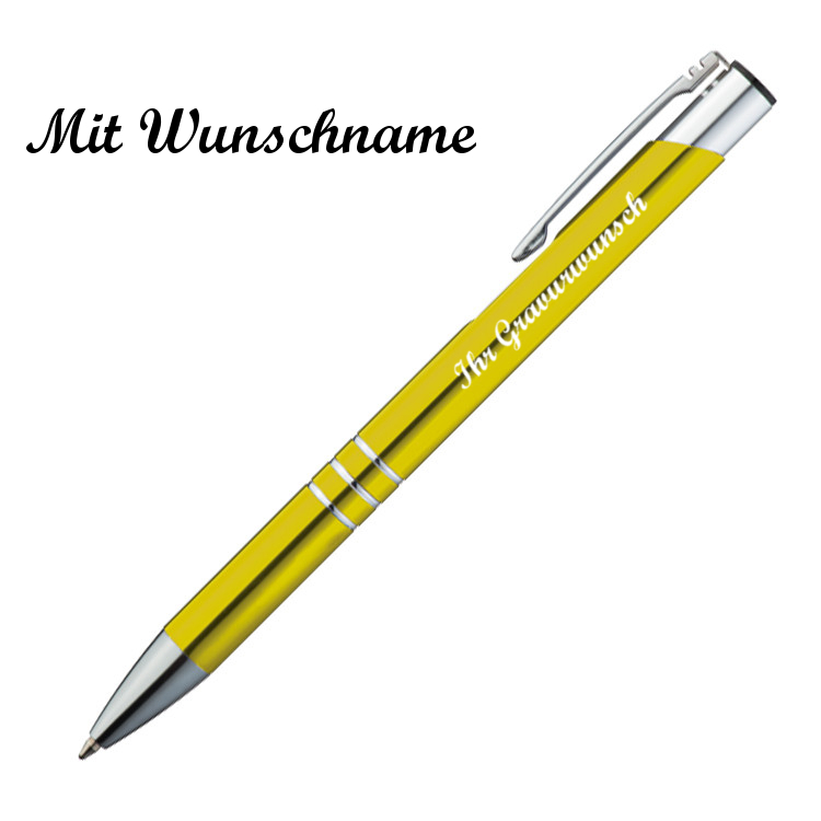10 Kugelschreiber aus Metall mit Namensgravur - Farbe: gelb