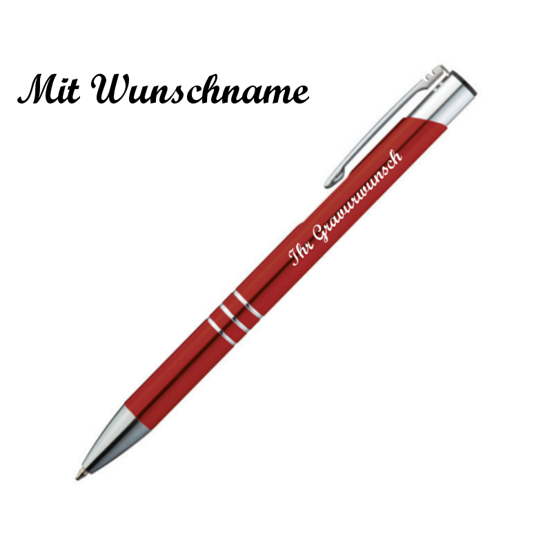 10 Kugelschreiber aus Metall mit Namensgravur - Farbe: rot