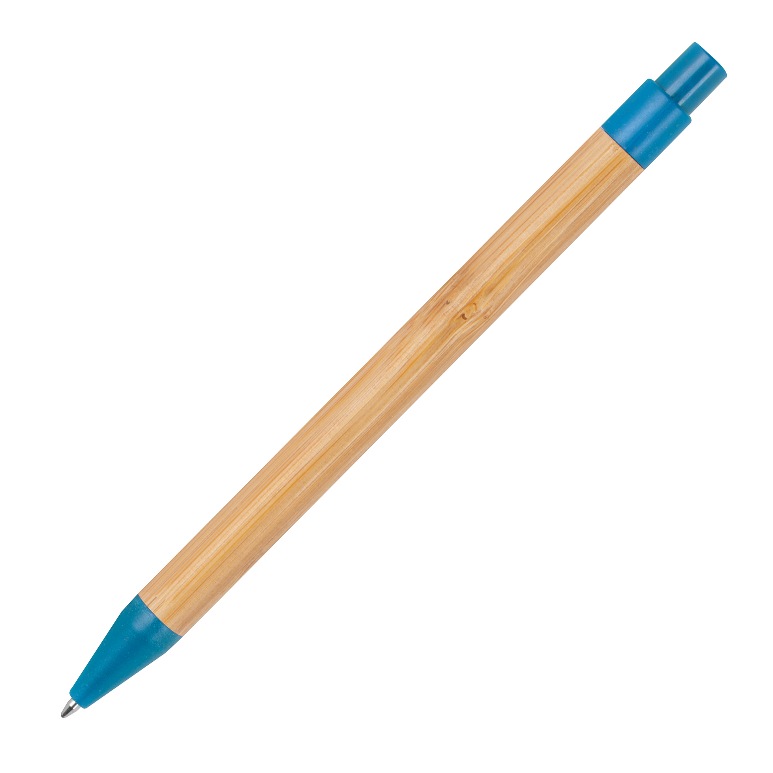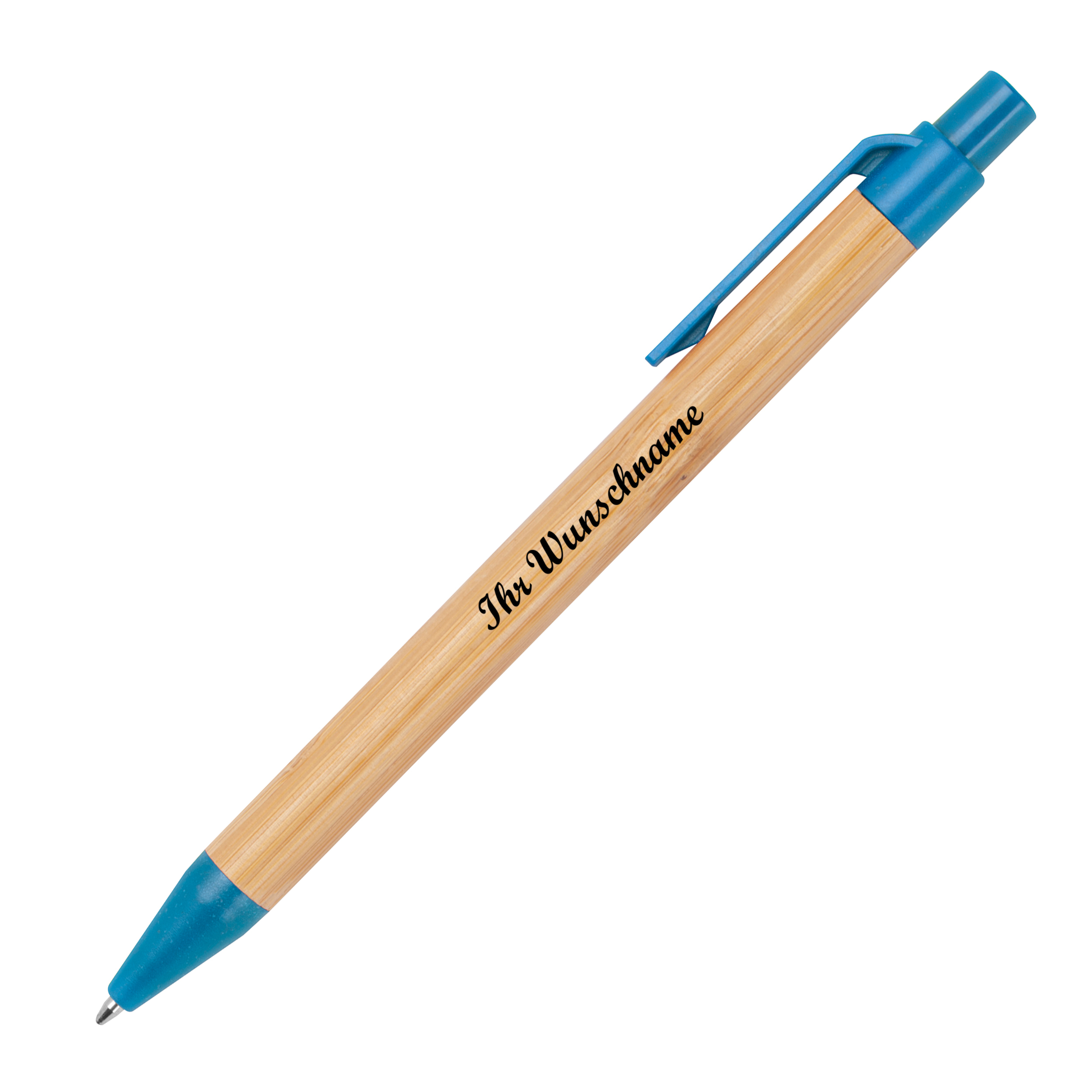 10 Kugelschreiber aus Weizenstroh und Bambus mit Namensgravur - Farbe: blau
