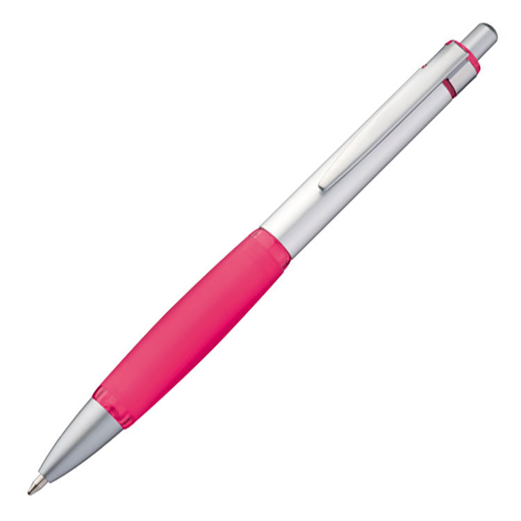 10 Kugelschreiber mit Gravur / aus Metall / Farbe: silber-pink