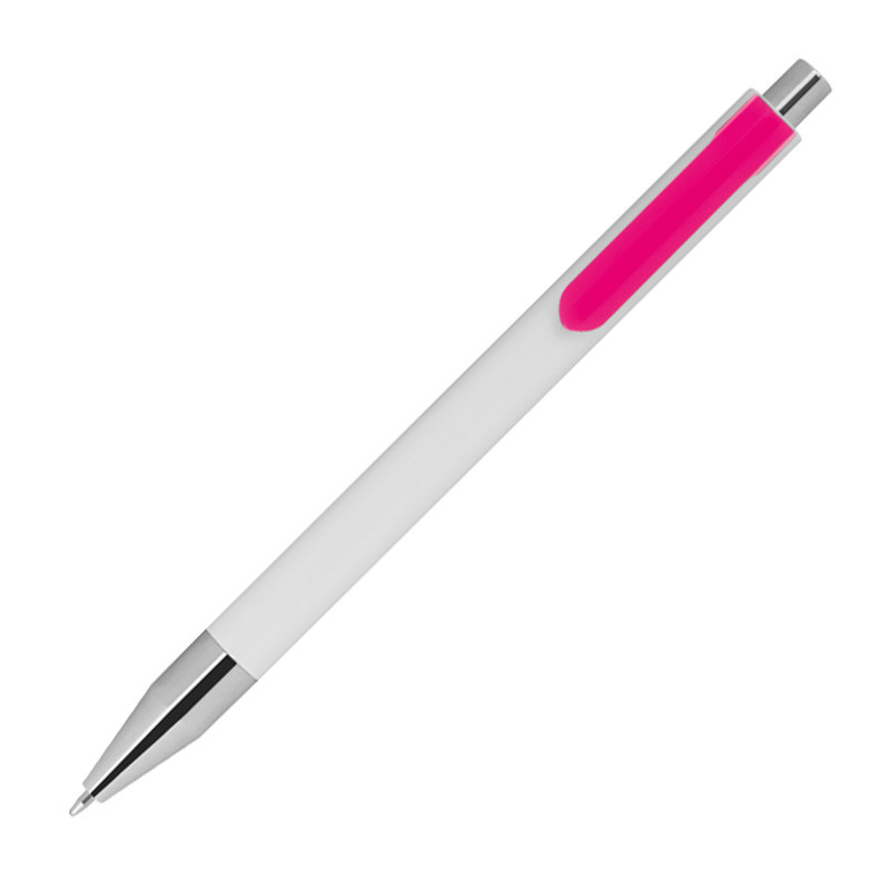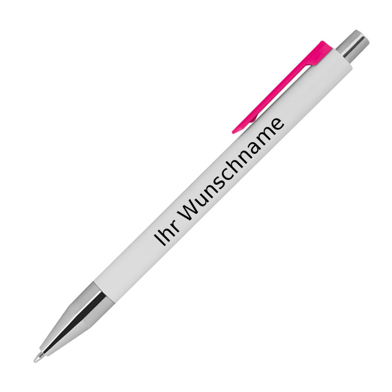 10 Kugelschreiber mit Gravur / Farbe: weiß mit pinken Clip