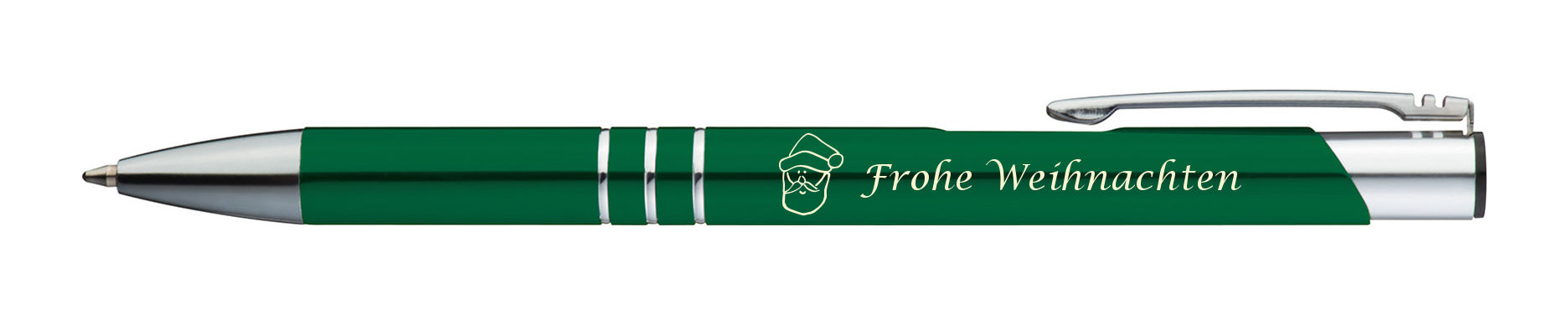 10 Kugelschreiber mit Gravur "Frohe Weinachten" / aus Metall / Farbe: grün
