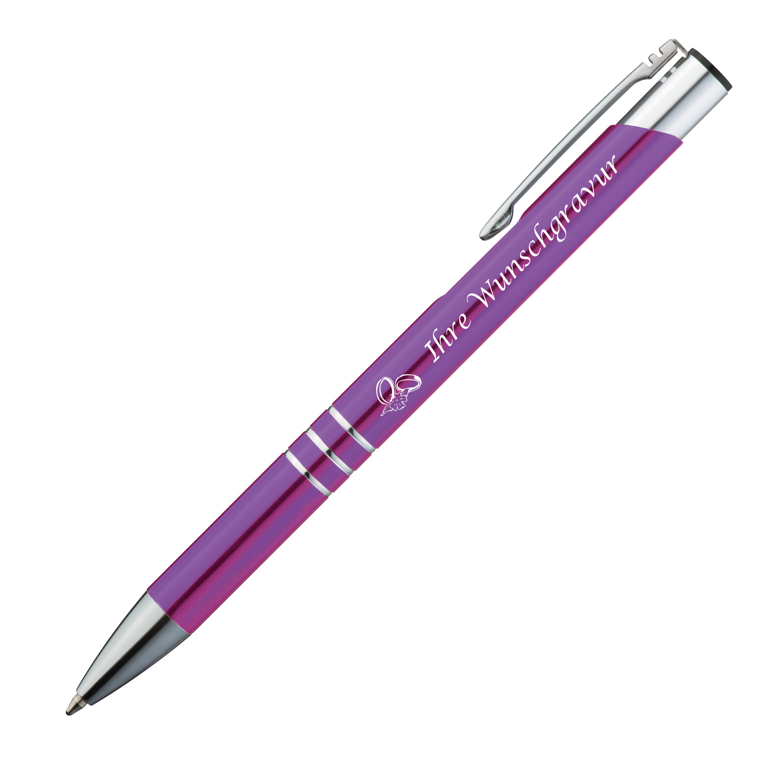Produktinformationen "10 Kugelschreiber mit Gravur "Hochzeit" / aus Metall / Farbe: lila"