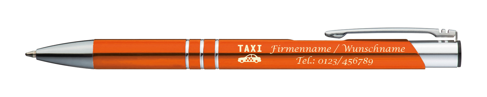 10 Kugelschreiber mit Gravur "Taxi" / aus Metall / Farbe: orange