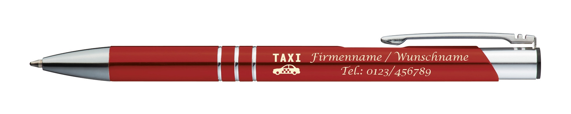 10 Kugelschreiber mit Gravur "Taxi" / aus Metall / Farbe: rot