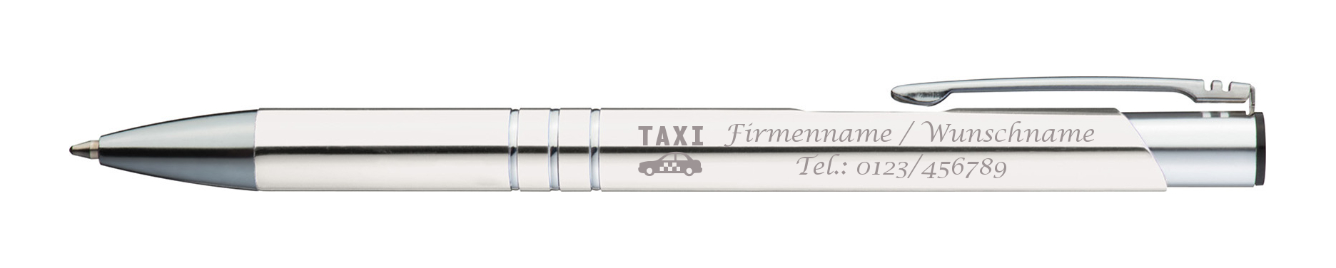 Produktinformationen "10 Kugelschreiber mit Gravur "Taxi" / aus Metall / Farbe: weiß"
