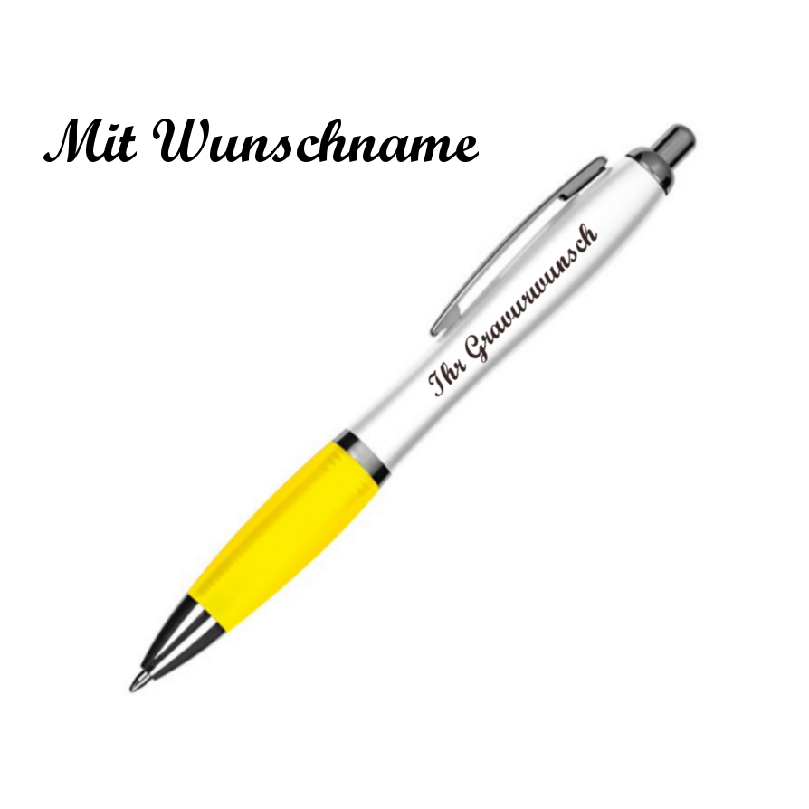 10 Kugelschreiber mit Namensgravur - aus Kunststoff - Farbe: weiß-gelb