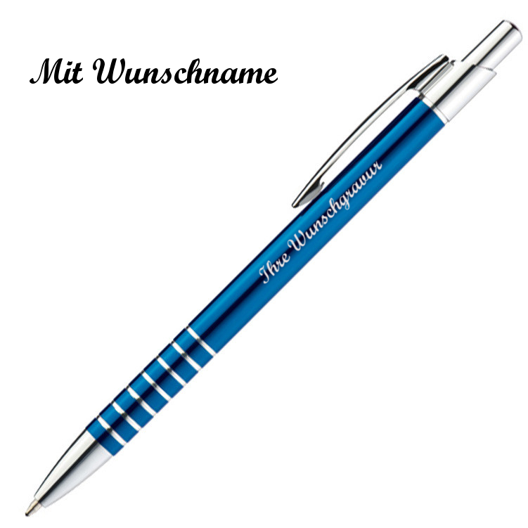 10 Kugelschreiber mit Namensgravur - aus Metall / Farbe: blau