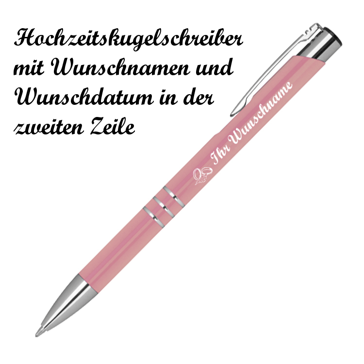 10 Kugelschreiber mit Namensgravur "Hochzeit" - aus Metall - Farbe: rose'