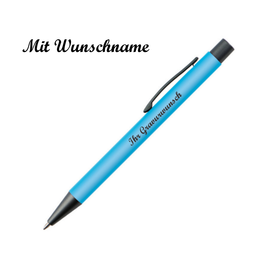 10 Kugelschreiber mit Namensgravur / mit Clip aus Metall / Farbe: hellblau