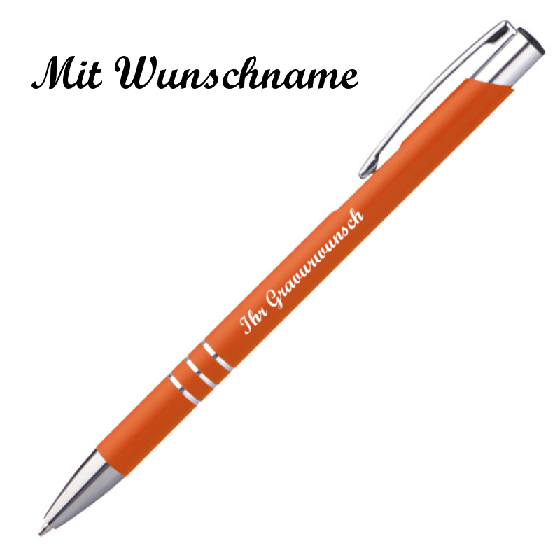 10 schlanke Kugelschreiber mit Namensgravur - aus Metall - Farbe: orange