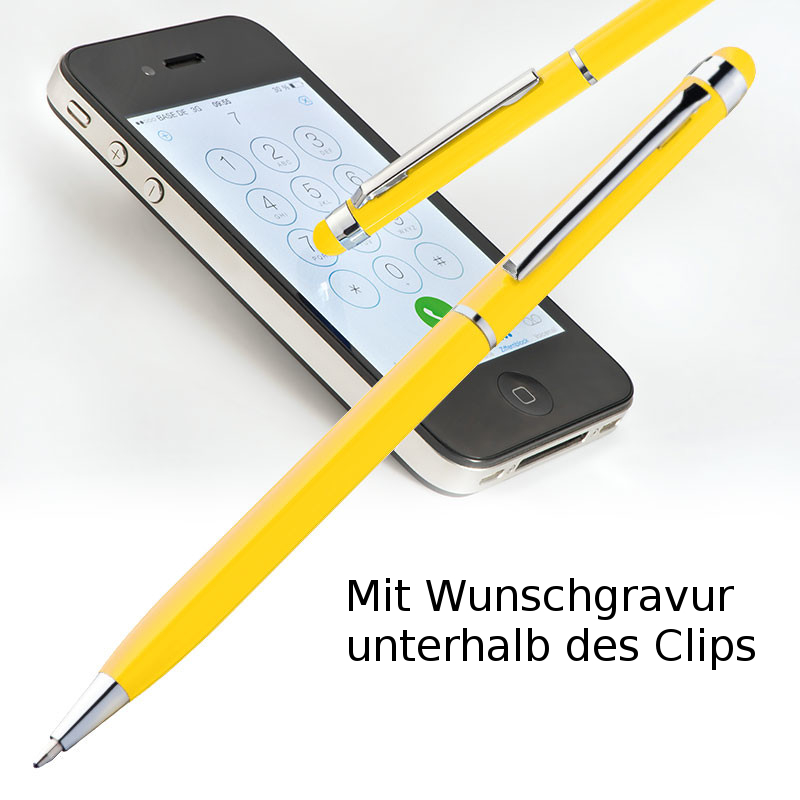 10 Touchpen Drehkugelschreiber mit Gravur / aus Edelstahl / Farbe: gelb