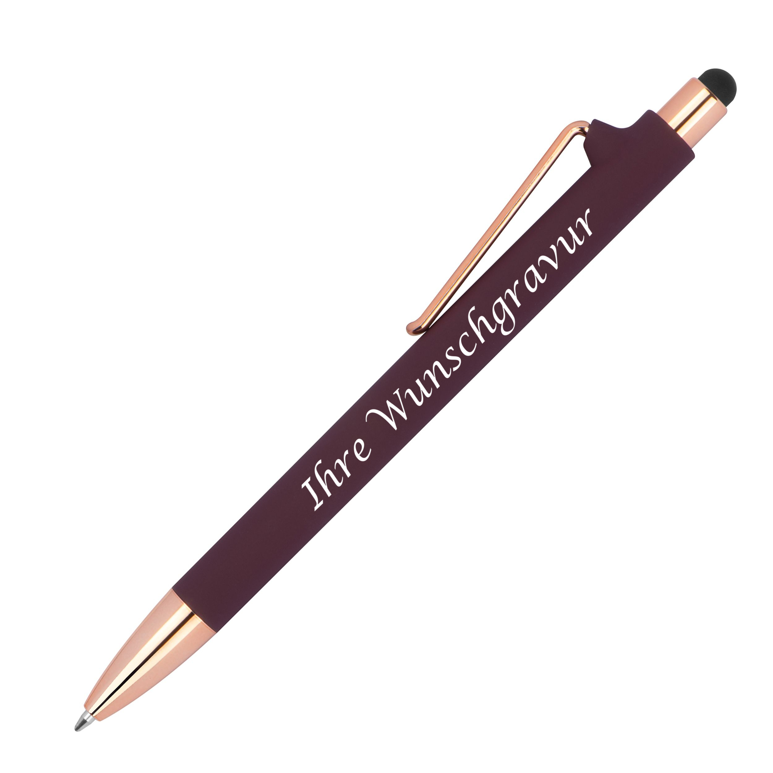 10 Touchpen-Kugelschreiber aus Metall mit Gravur / Farbe: roségold-bordeaux