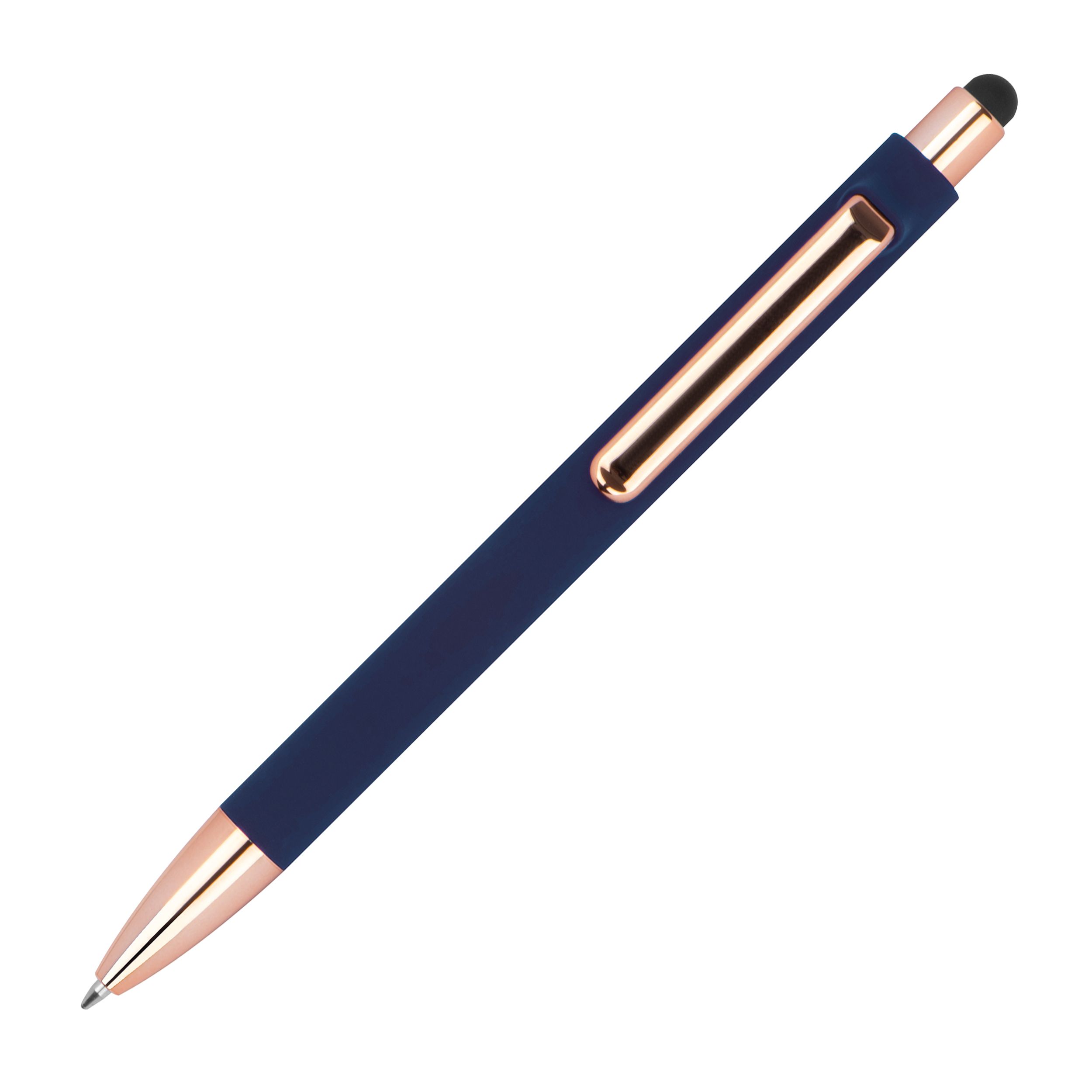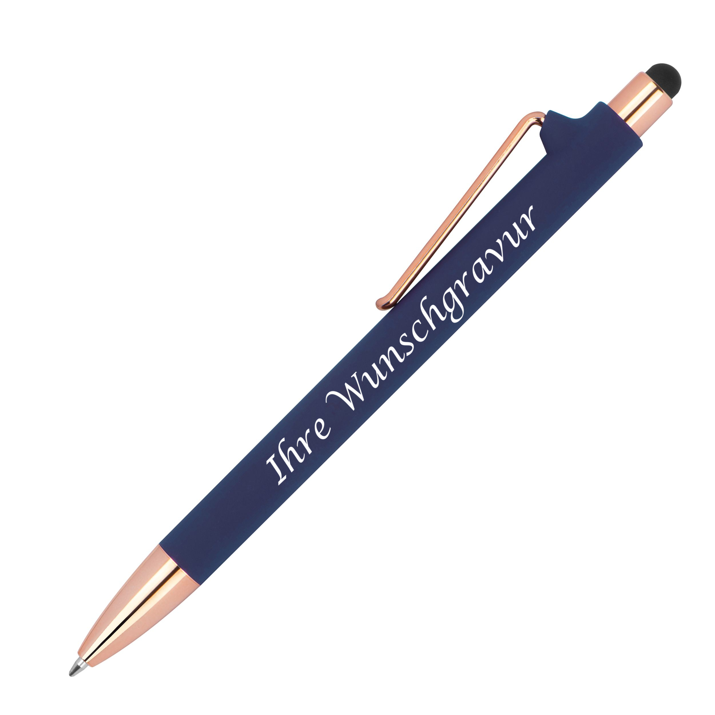 10 Touchpen-Kugelschreiber aus Metall mit Gravur / Farbe: roségold-dunkelblau