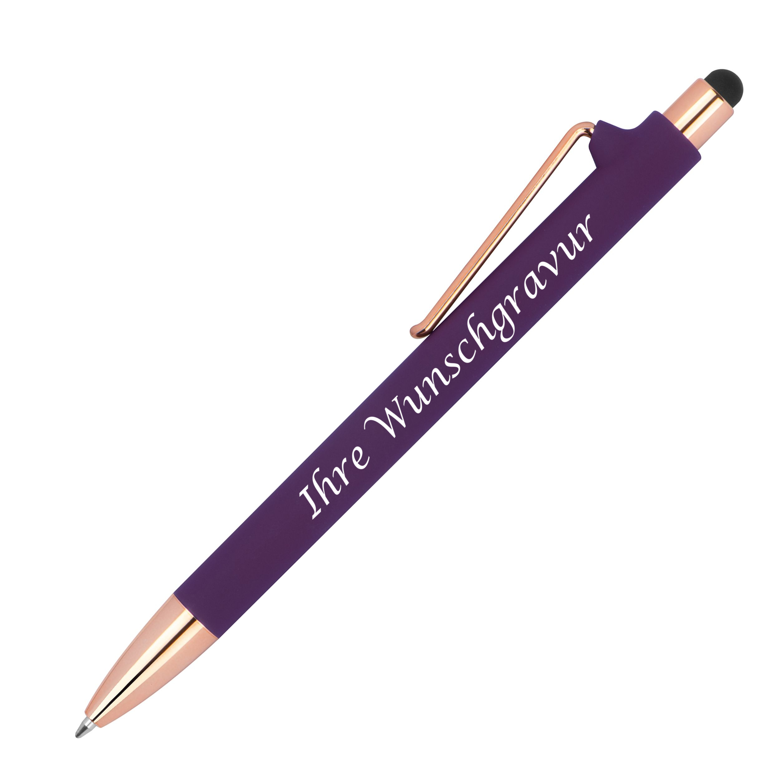 10 Touchpen-Kugelschreiber aus Metall mit Gravur / Farbe: roségold-lila