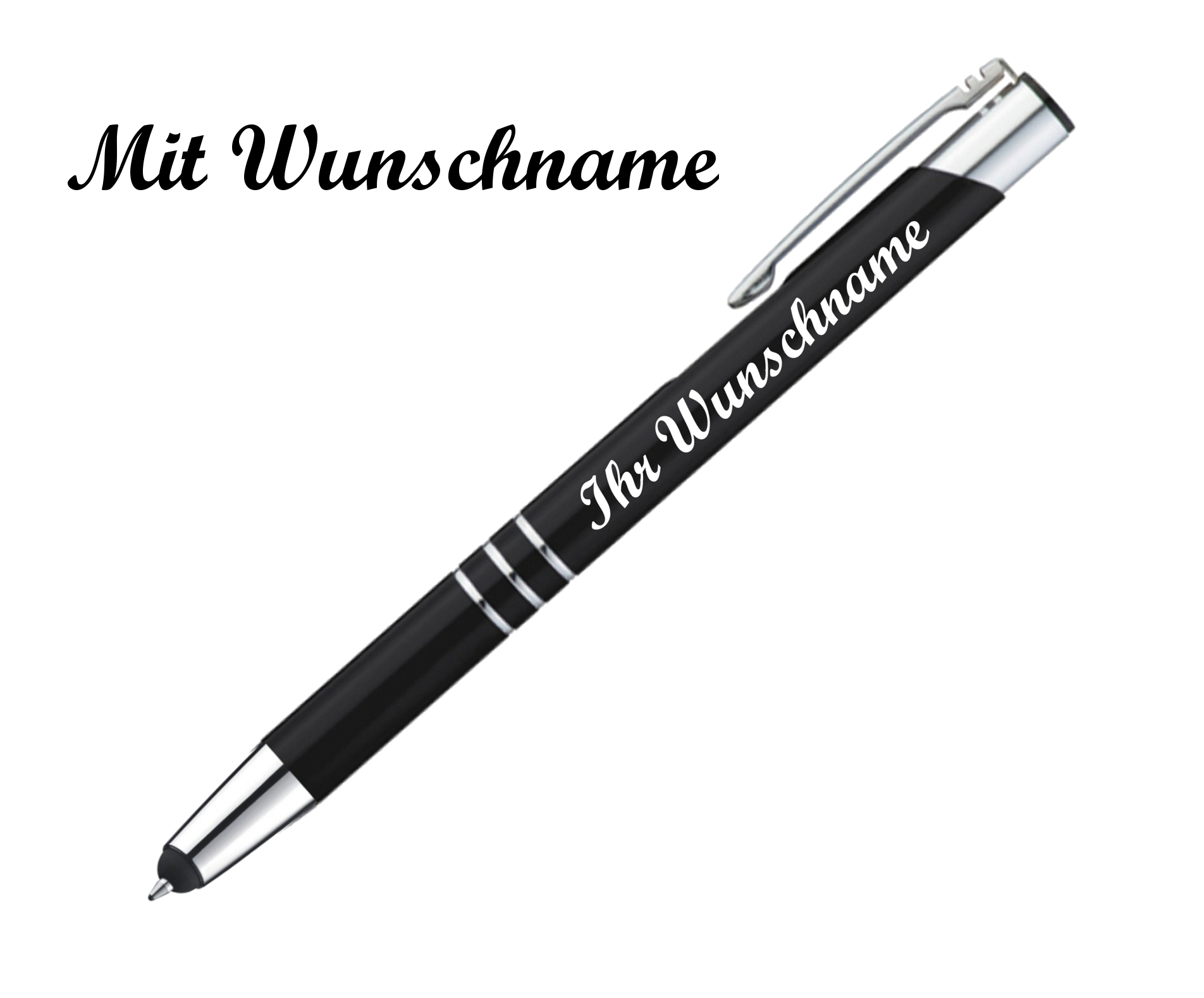 10 Touchpen Kugelschreiber aus Metall mit Namensgravur - Farbe: schwarz