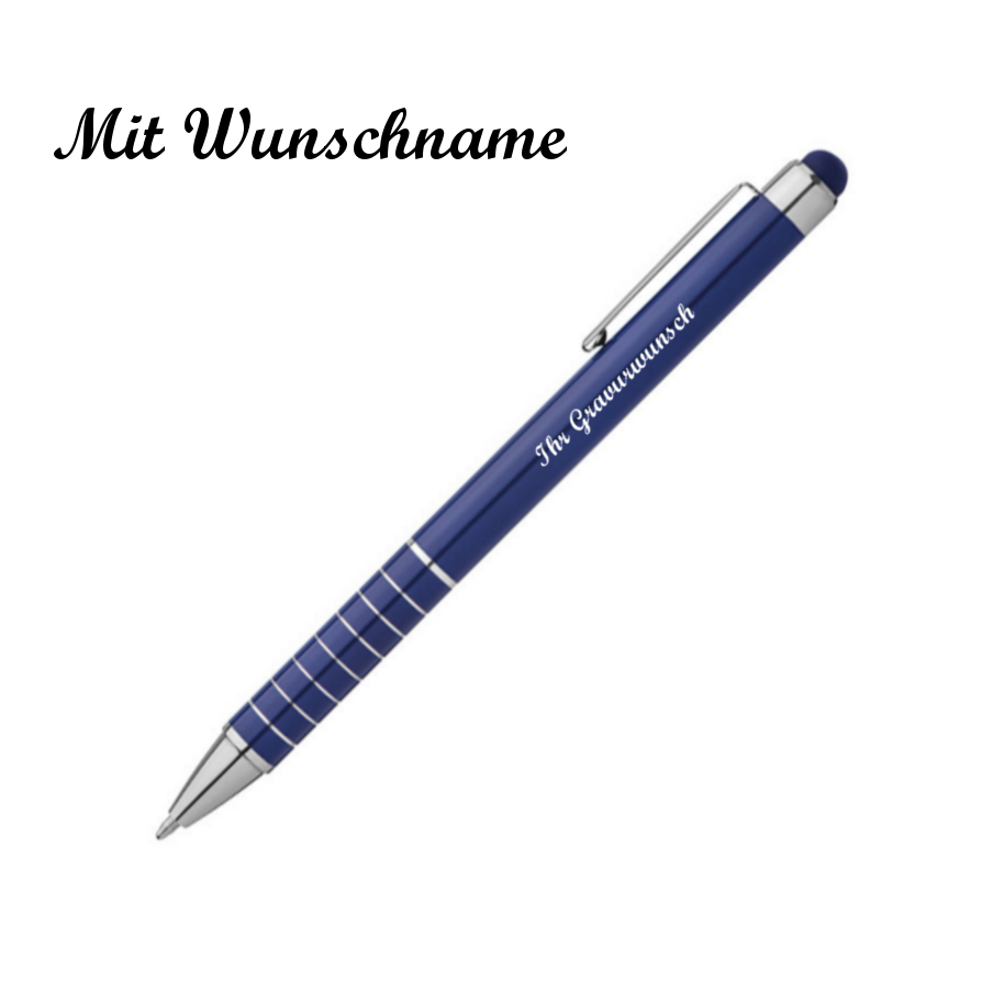 10 Touchpen Kugelschreiber mit Namensgravur - aus Metall - Farbe: blau