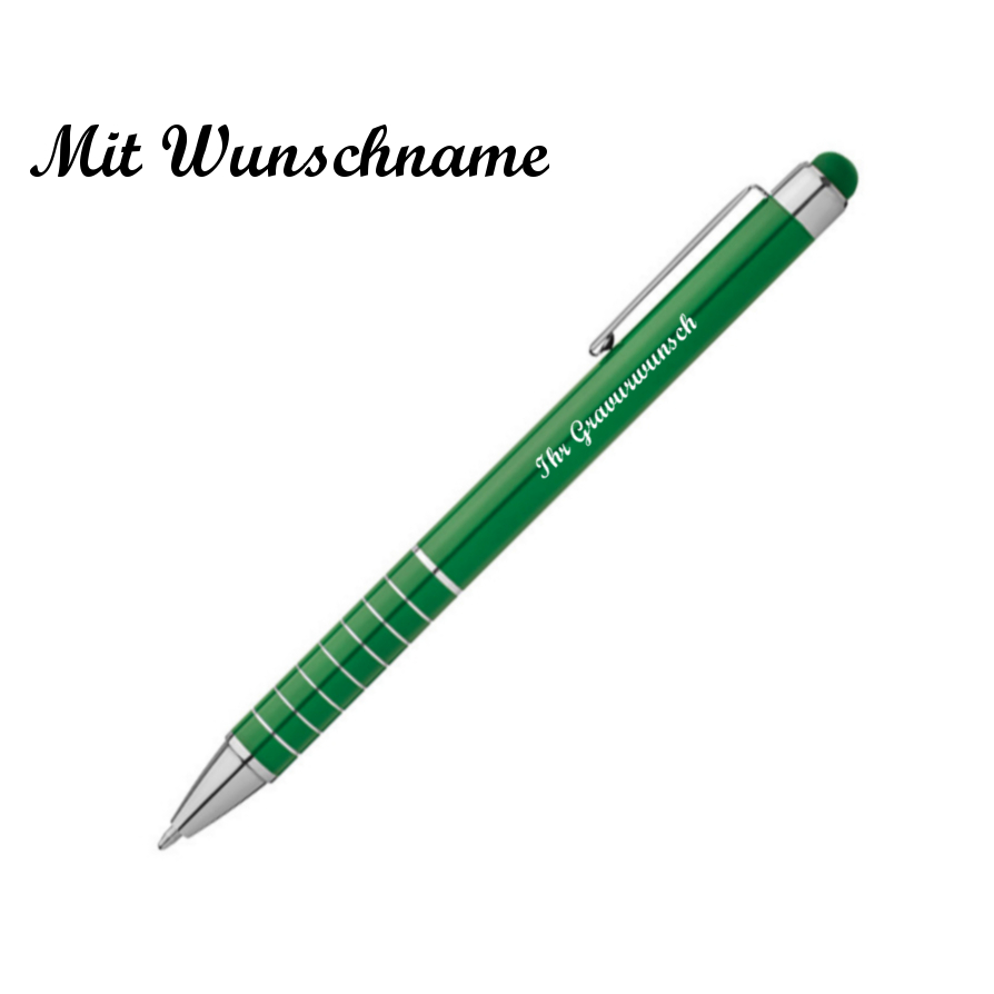 10 Touchpen Kugelschreiber mit Namensgravur - aus Metall - Farbe: grün