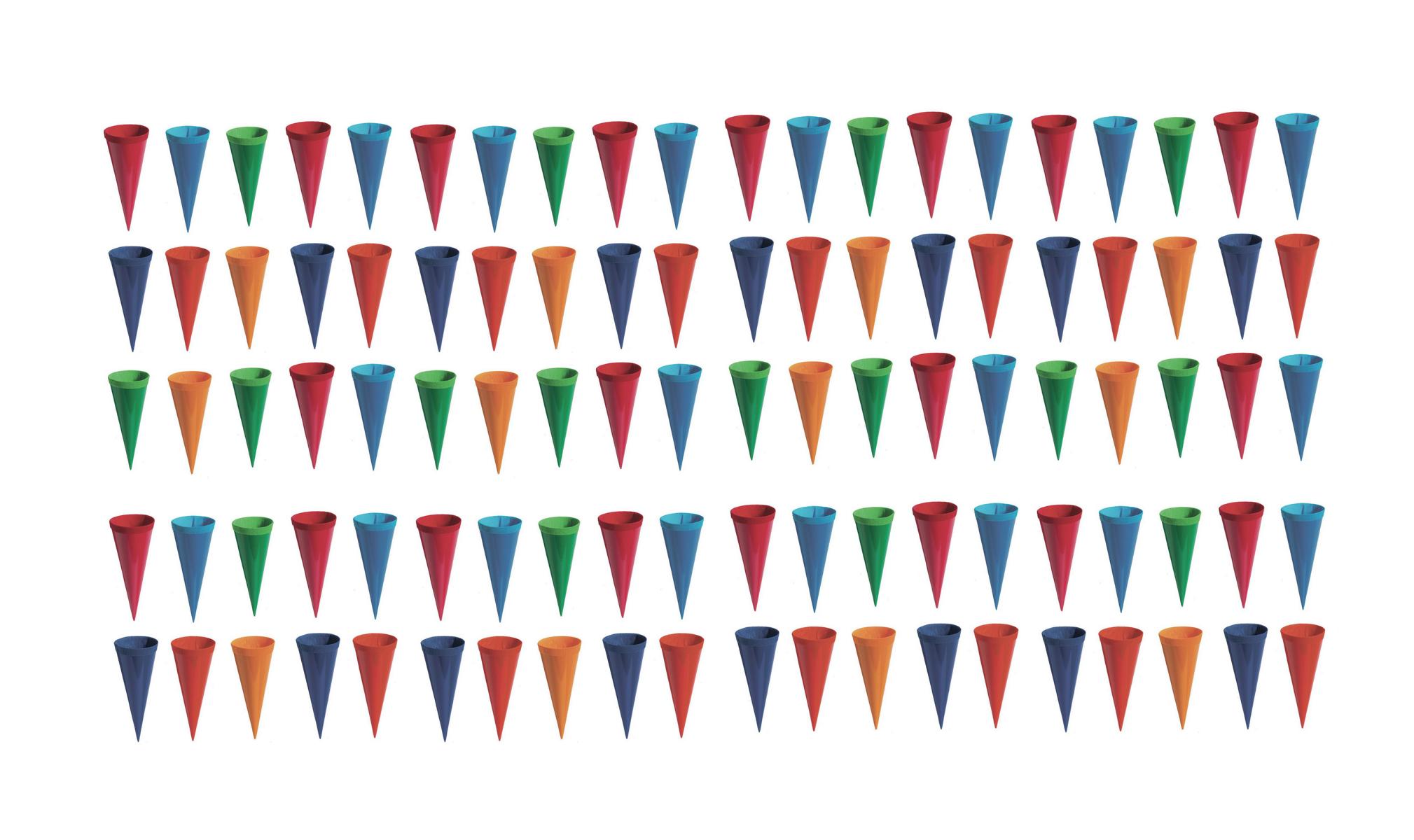 100 Deko Schultüten / Länge: 12,5cm / 6 verschiedene Farben