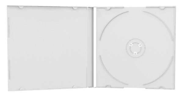 Komplett transparentes Slimcase. Das Slimcase ist nur gut halb so dick wie ein normales Jewelcase. Auch das Slimcase verfügt über Inlayclips und hat Platz für eine CD oder DVD.