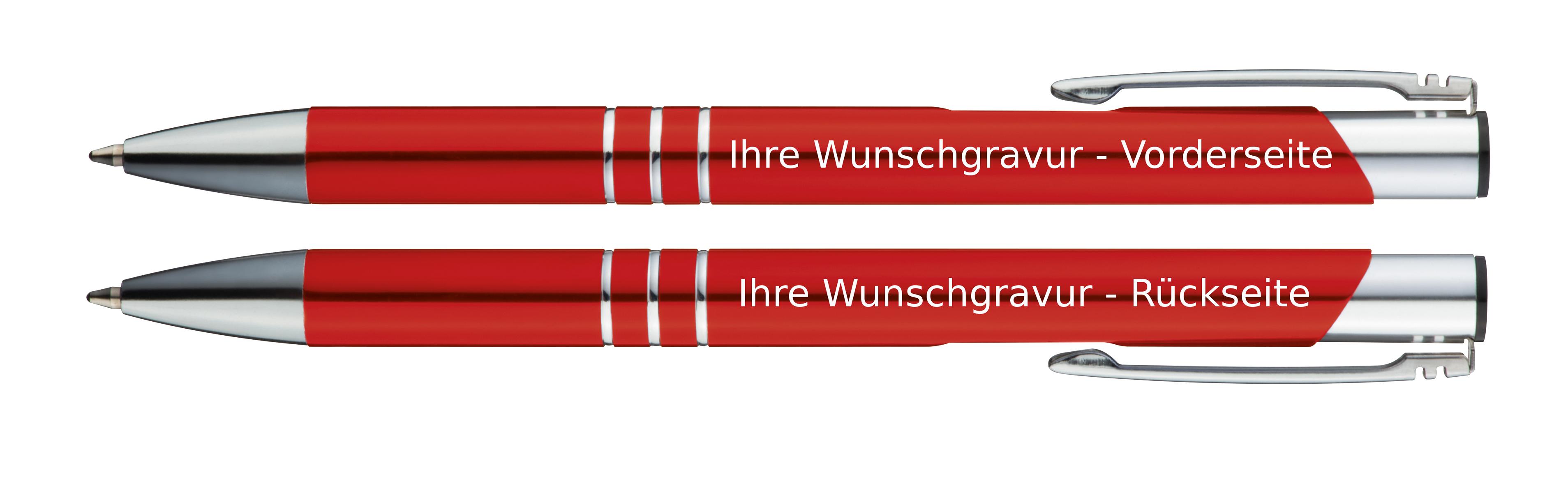 100 Kugelschreiber aus Metall / mit beidseitige Gravur / Farbe: rot