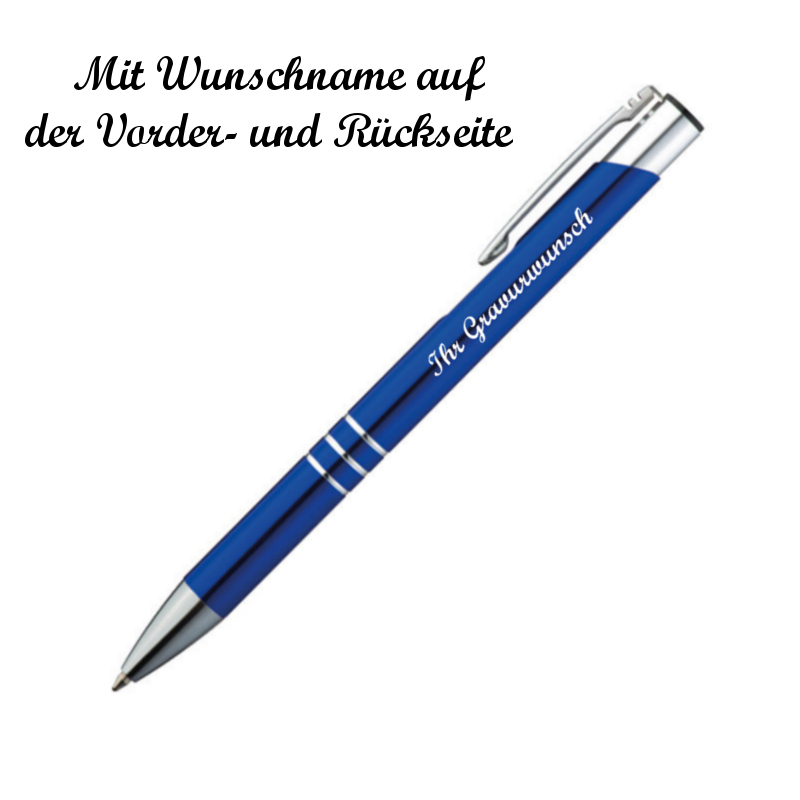 100 Kugelschreiber aus Metall mit beidseitige Namensgravur - Farbe: blau