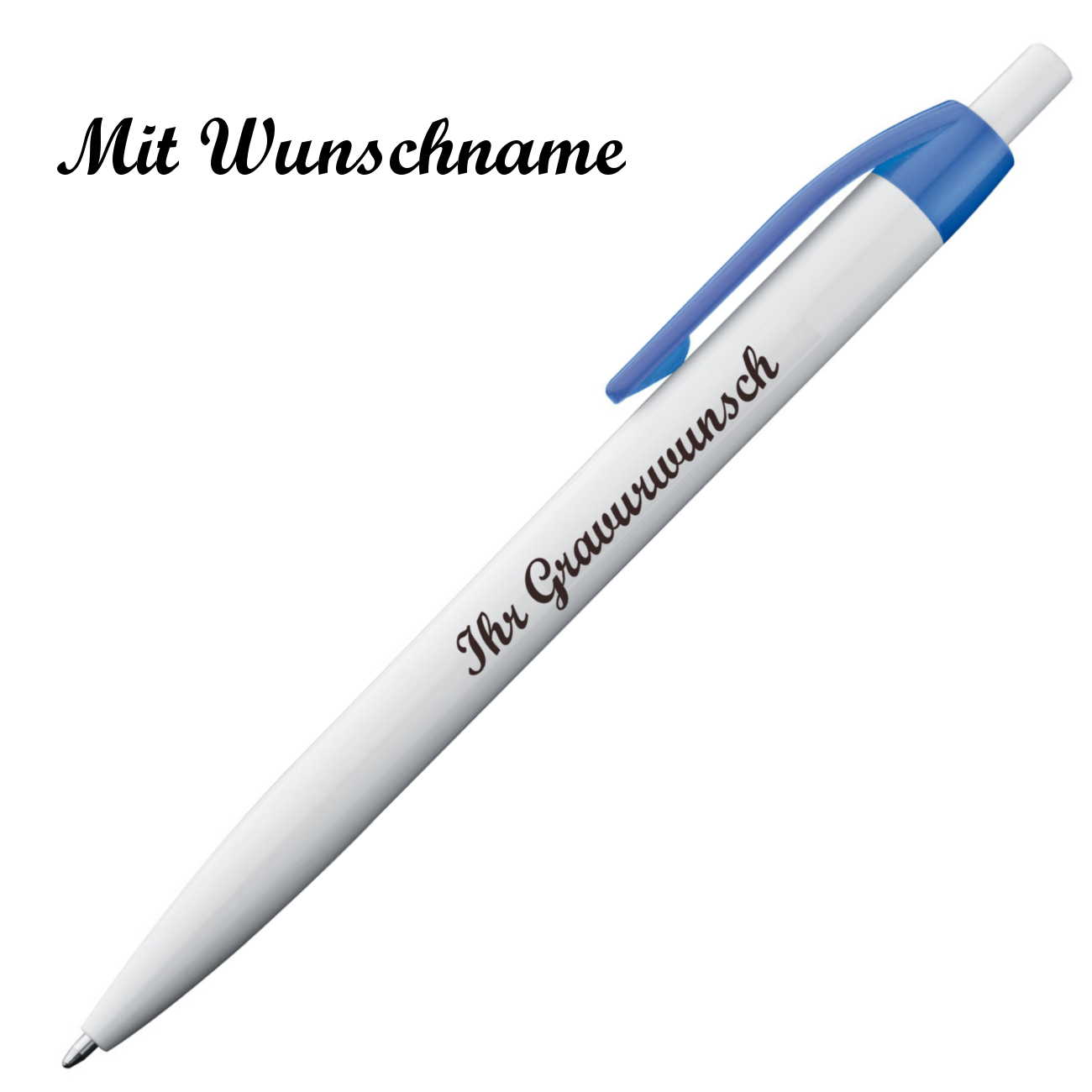 100x Kugelschreiber mit Namensgravur - Clipfarbe: blau