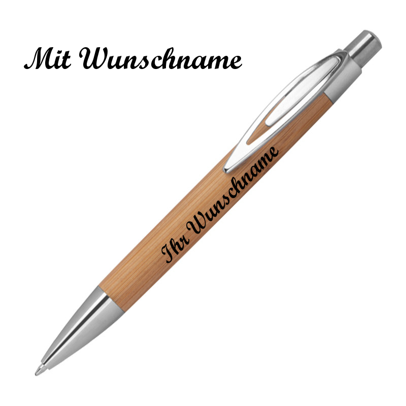 10x Bambus Kugelschreiber mit Namensgravur - mit spitzem Clip