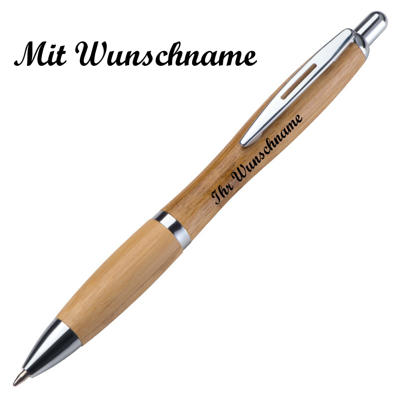 10x Bambus Kugelschreiber mit Namensgravur